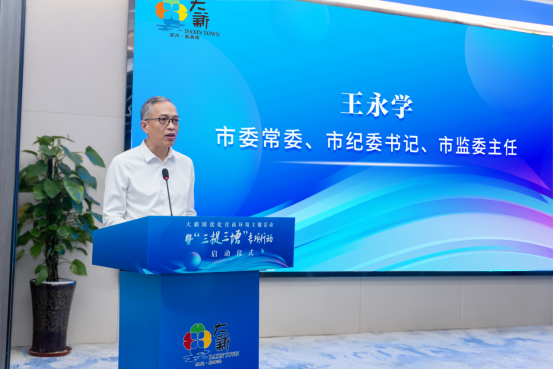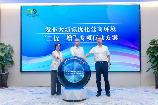 接下來,讓我們以熱烈的掌聲,有請市委常委、市紀委書記、市監委主任王永學,市城市管理局黨委書記、局長黃晟,大新鎮黨委書記趙瑜共同上臺,為我們啟動大新鎮優化營商環境“三提三增”專項行動!3,2,1,啟動!大新鎮優化營商環境“三提三增”專項行動正式啟動!