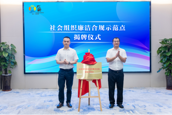感謝各位監督員,請入席就座!近年來,大新鎮堅持黨建引領,持續推進社會組織廉潔合規建設,促進社會組織在經濟建設、鄉村振興、社會治理等方面發揮積極作用。特別是我們的大新商會,在市民政局的指導下,以爭創社會組織廉潔合規示范點為目標,全面加強商會廉政建設和依法治理,推動商會健康有序發展。下面,有請市民政局黨委委員、副局長湯偉剛,大新鎮副鎮長任亞超為社會組織廉潔合規示范點揭牌,有請湯局、任鎮!