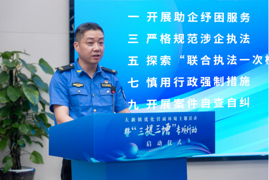 主持人:規范執法有尺度,優化營商添溫度。為積極營造公平穩定可預期的營商環境,切實提升市場主體的滿意度、獲得感,下半年,大新鎮將圍繞“提升執法規范化水平,增強隊伍能力素質;提振企業發展信心,增添市場主體活力;提亮親清在線品牌,增進監督治理效能”三大重點任務,開展專項行動。