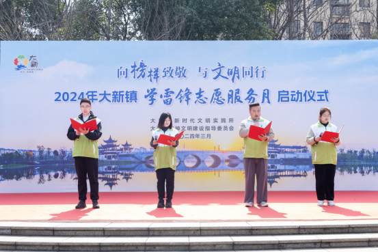 今年,是毛澤東等老一輩革命家為雷鋒同志題詞61周年,為大力弘揚雷鋒精神,加快推進全國文明村鎮(zhèn)建設(shè)。今天,我們在這里隆重舉行2024年大新鎮(zhèn)學雷鋒志愿服務月啟動儀式。我是主持人周楠。