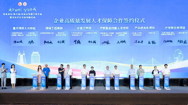 產(chǎn)業(yè)發(fā)展、人才先行。接下來(lái),進(jìn)行企業(yè)高質(zhì)量發(fā)展人才保障合作簽約。掌聲有請(qǐng):重大項(xiàng)目人才供給:采埃孚汽車科技(張家港)有限公司—云南機(jī)電職業(yè)技術(shù)學(xué)院;現(xiàn)場(chǎng)工程師班:永卓控股有限公司—常州機(jī)電職業(yè)技術(shù)學(xué)院;企業(yè)訂單班:江蘇珂亦新能源科技有限公司—沙洲職業(yè)工學(xué)院;產(chǎn)教融合技能人才學(xué)院:張家港市人力資源開(kāi)發(fā)有限公司—蘇州市電子信息技師學(xué)院;產(chǎn)學(xué)研合作項(xiàng)目:沙鋼鋼鐵研究院—中南大學(xué);蘇閩(張家港)新型金屬材料科技有限公司—上海交通大學(xué),上臺(tái)簽約!