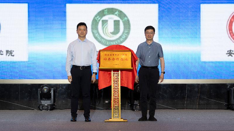 主持人:感謝李總的精彩分享!就在一周前,光束汽車電動(dòng)MINI十萬(wàn)臺(tái)下線慶典活動(dòng)舉行,這不僅是企業(yè)的里程碑,更是張家港新能源汽車產(chǎn)業(yè)發(fā)展的又一高光時(shí)刻,從產(chǎn)業(yè)視角為我們勾勒了企業(yè)發(fā)展、人才成長(zhǎng)的無(wú)限可能。而此刻,我們將共同見(jiàn)證這份可能性的“扎根落地”——張家港卓越工程師培養(yǎng)合作基地即將正式啟航!下面,掌聲有請(qǐng)有請(qǐng)張家港市委副書記、政法委書記邵軍民,南京工業(yè)職業(yè)技術(shù)大學(xué)黨委書記謝永華為張家港卓越工程師培養(yǎng)合作基地揭牌!