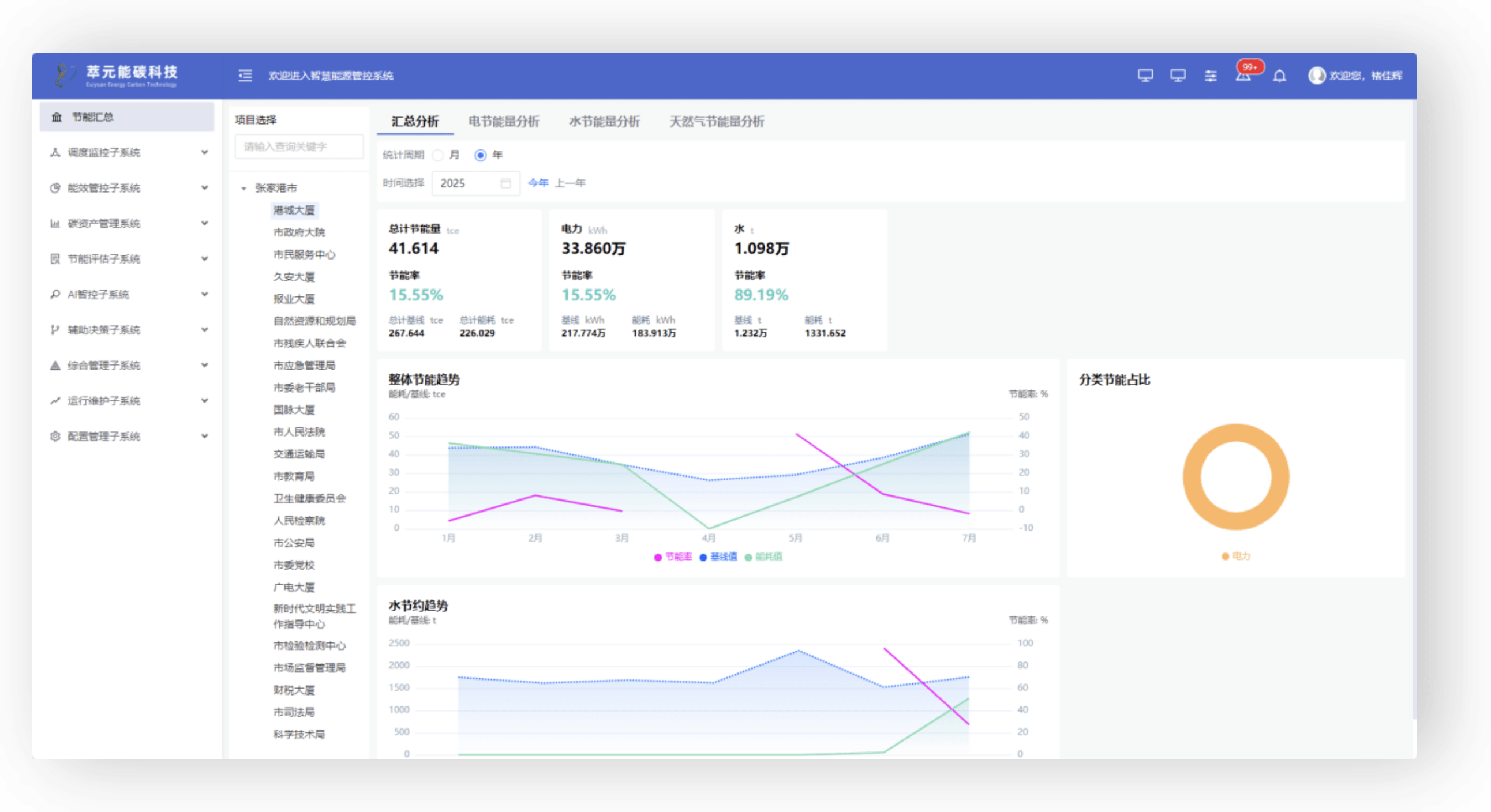 3月建成全市能源智慧管控平臺,實現線上監測與服務,2025年10月已完成26個辦公區數據接入。