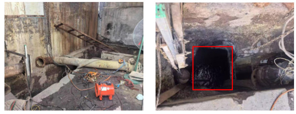 事發當日,該企業組織員工開展污水處理系統檢維修、清淤等作業,事故發生在污水處理系統的集水池。污水處理系統集水池位于地下1.3m以下位置,尺寸為5m×4m×2.2m(長寬深),事故發生時積水深度約80cm。