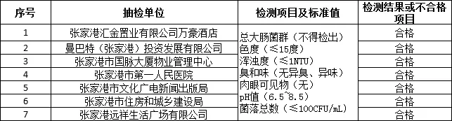 按照GB5749-2022《生活飲用水衛生標準》,委托第三方對總大腸菌群、色度、渾濁度、臭和味、肉眼可見物、pH值、菌落總數等項目進行了檢測。經檢測,7家單位所檢項目全部合格,合格率為100%。現將具體檢測結果情況公告如下: