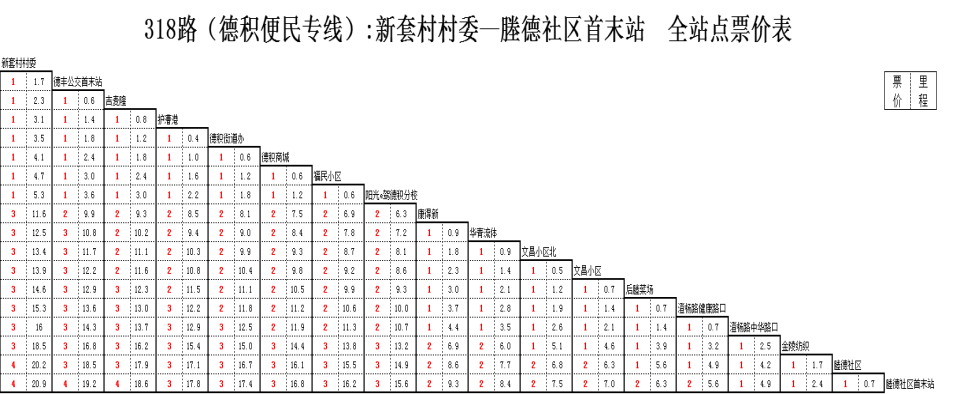 附件:318路(德積便民專線):新套村村委—塍德社區首末站全站點票價表