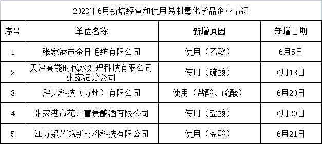 2023年6月新增經營和使用易制毒化學品企業情況