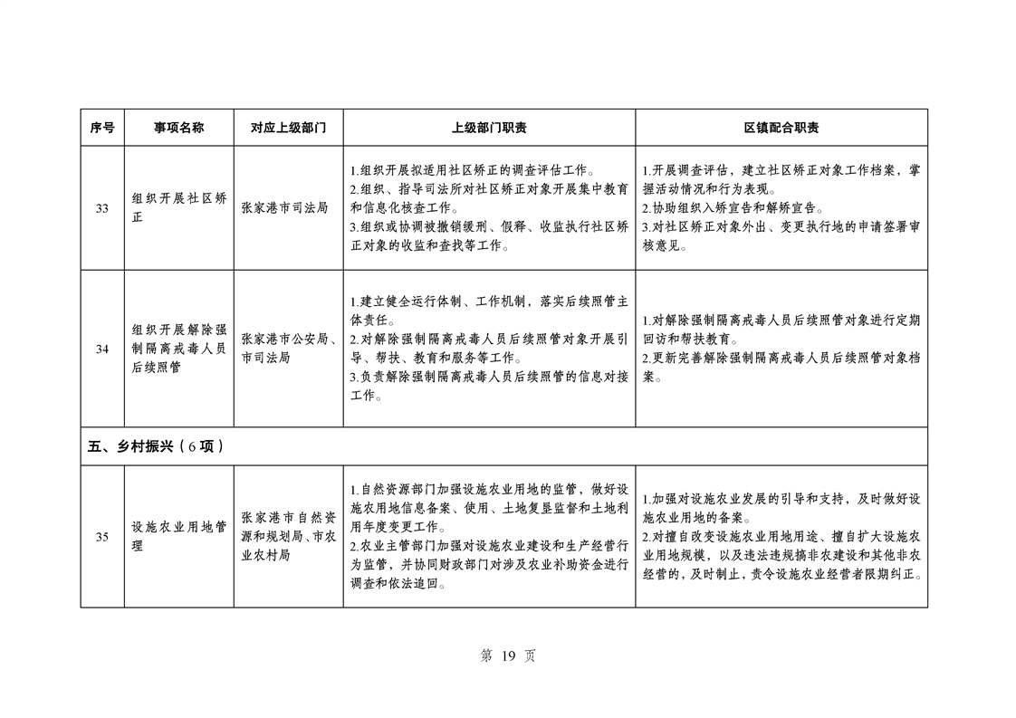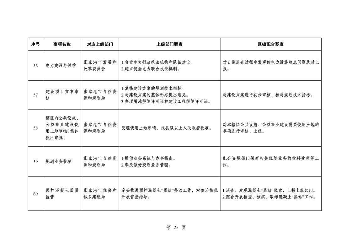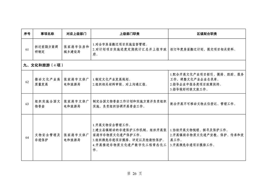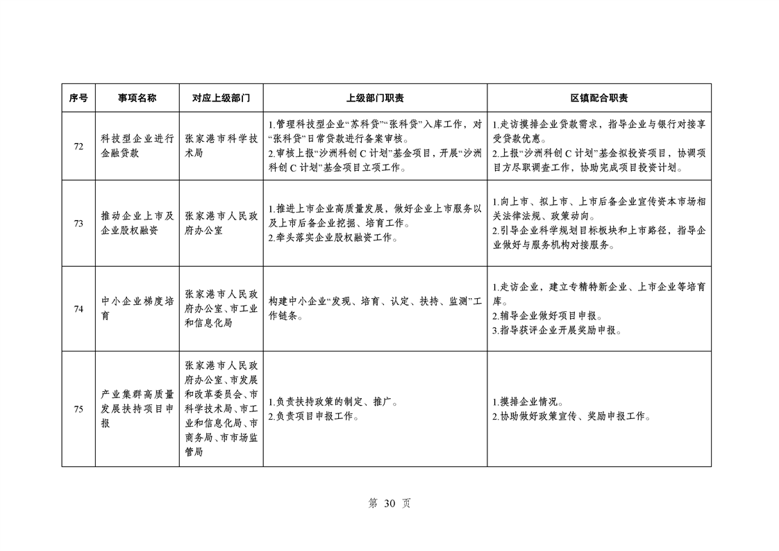 江蘇省蘇州市張家港市冶金工業園(錦豐鎮)履行職責事項清單