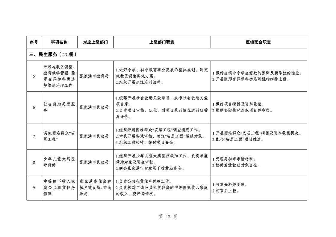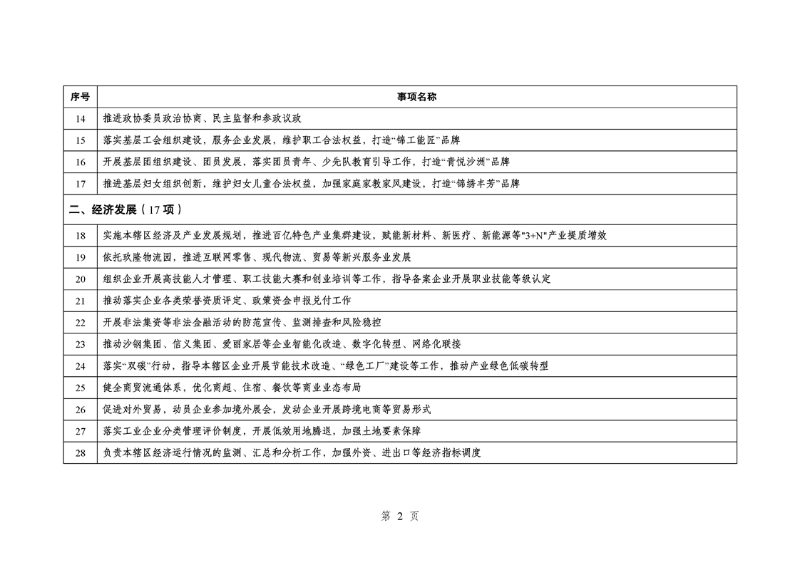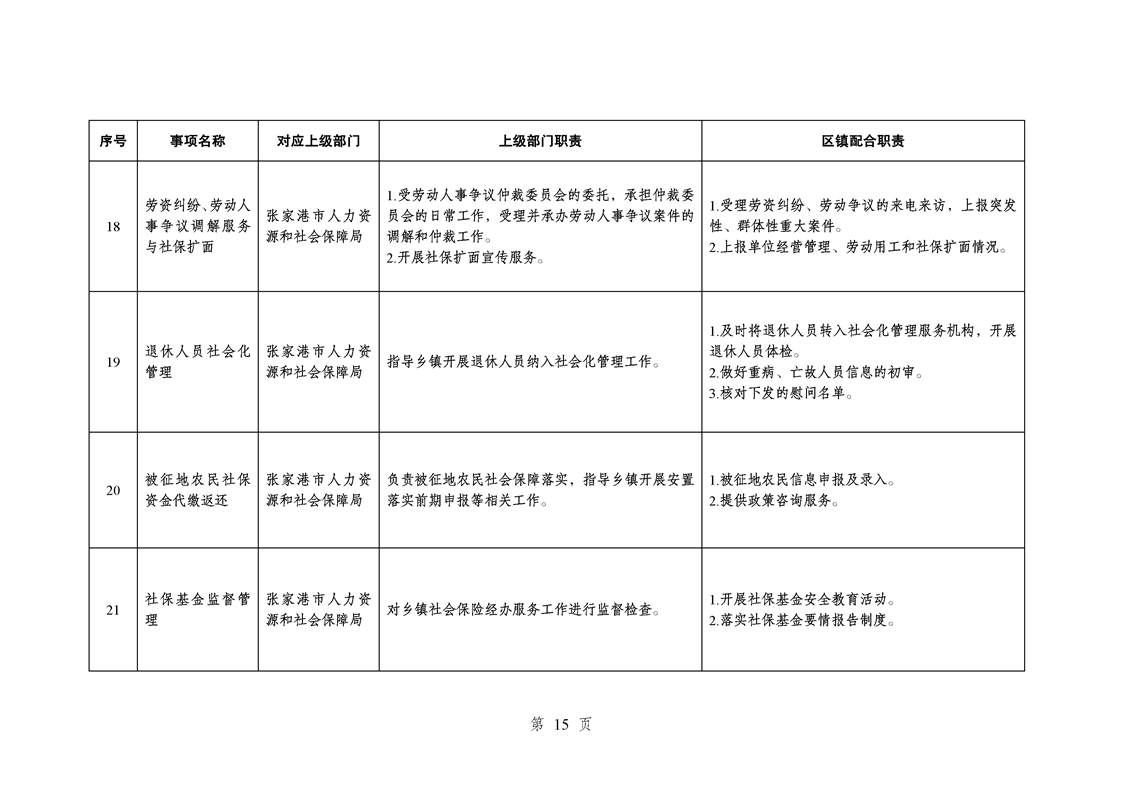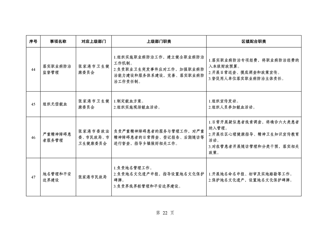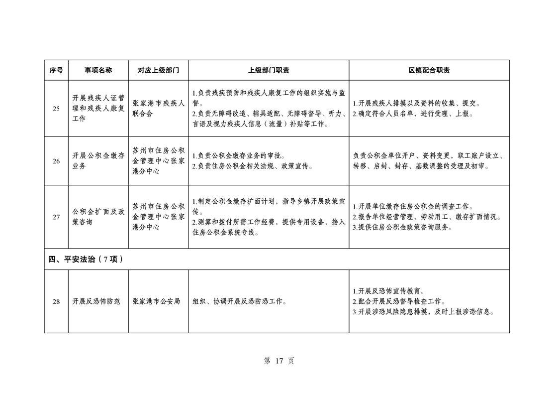 江蘇省蘇州市張家港市冶金工業園(錦豐鎮)履行職責事項清單