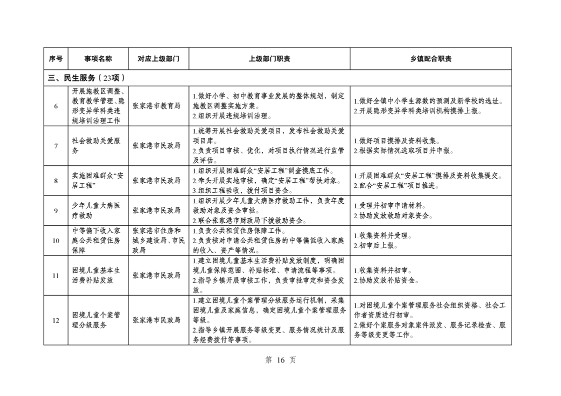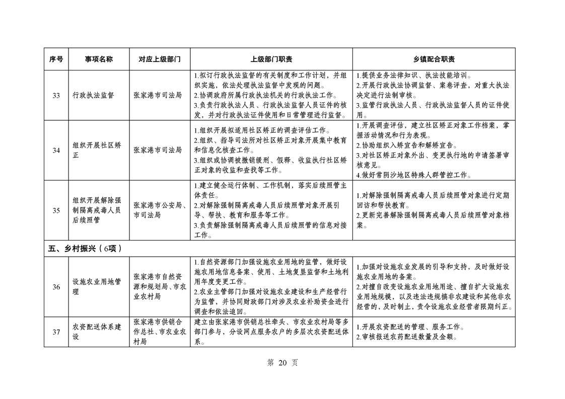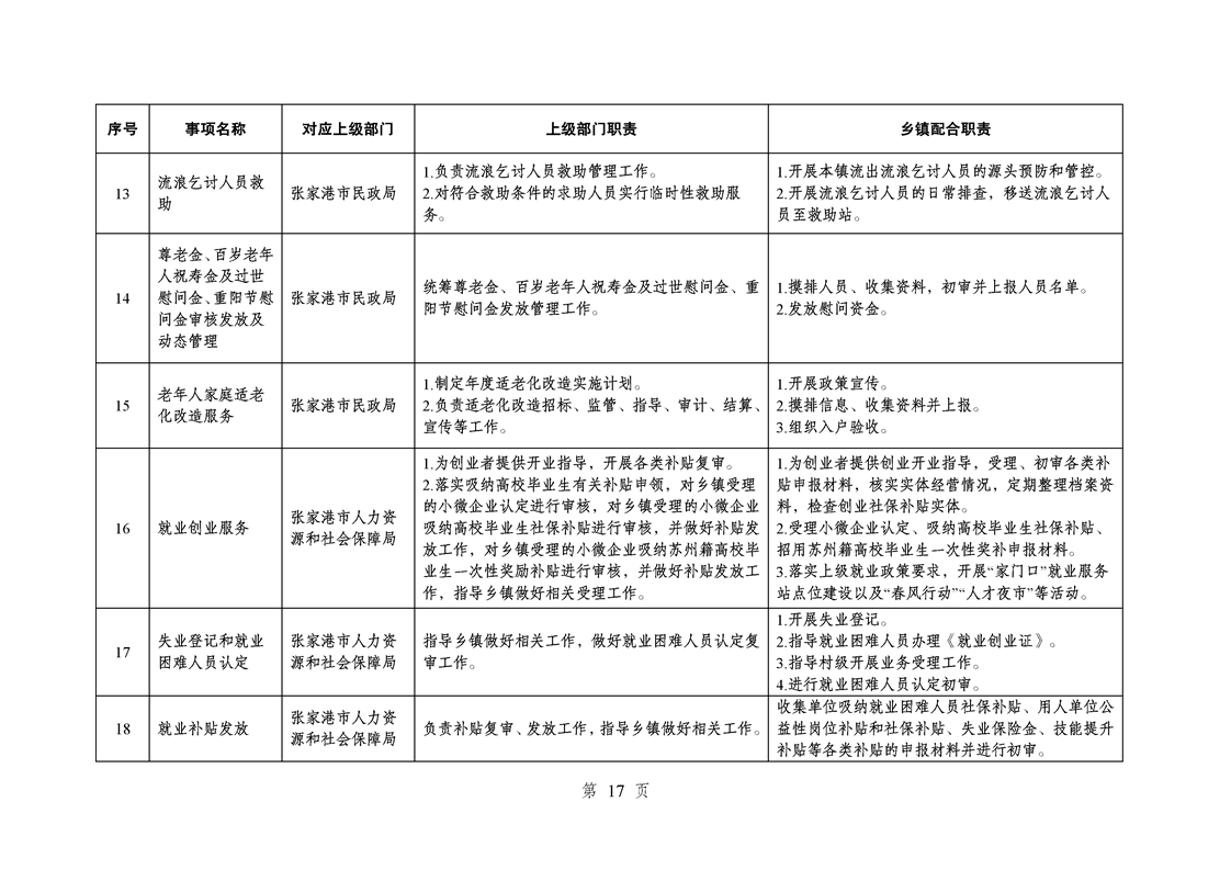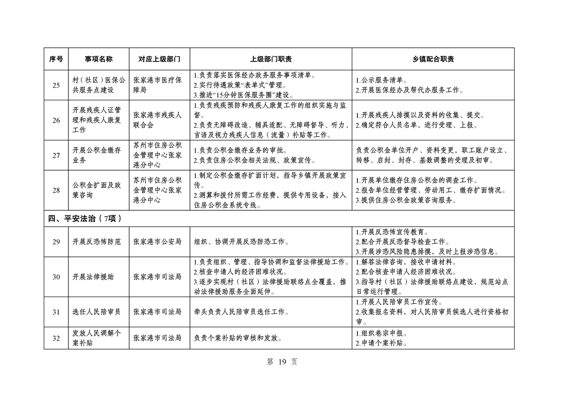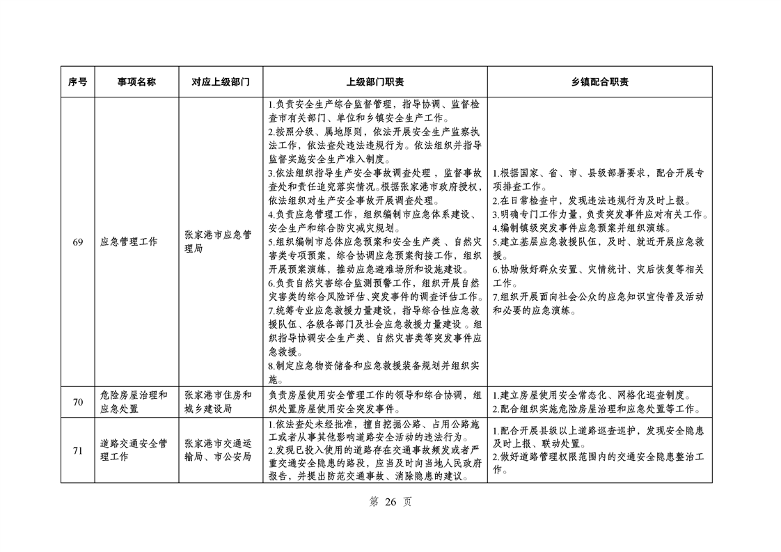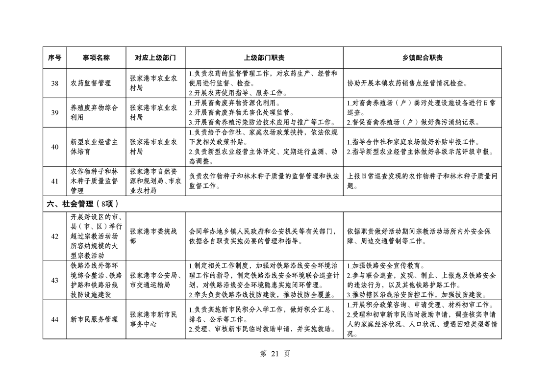 江蘇省蘇州市張家港市樂余鎮履行職責事項清單