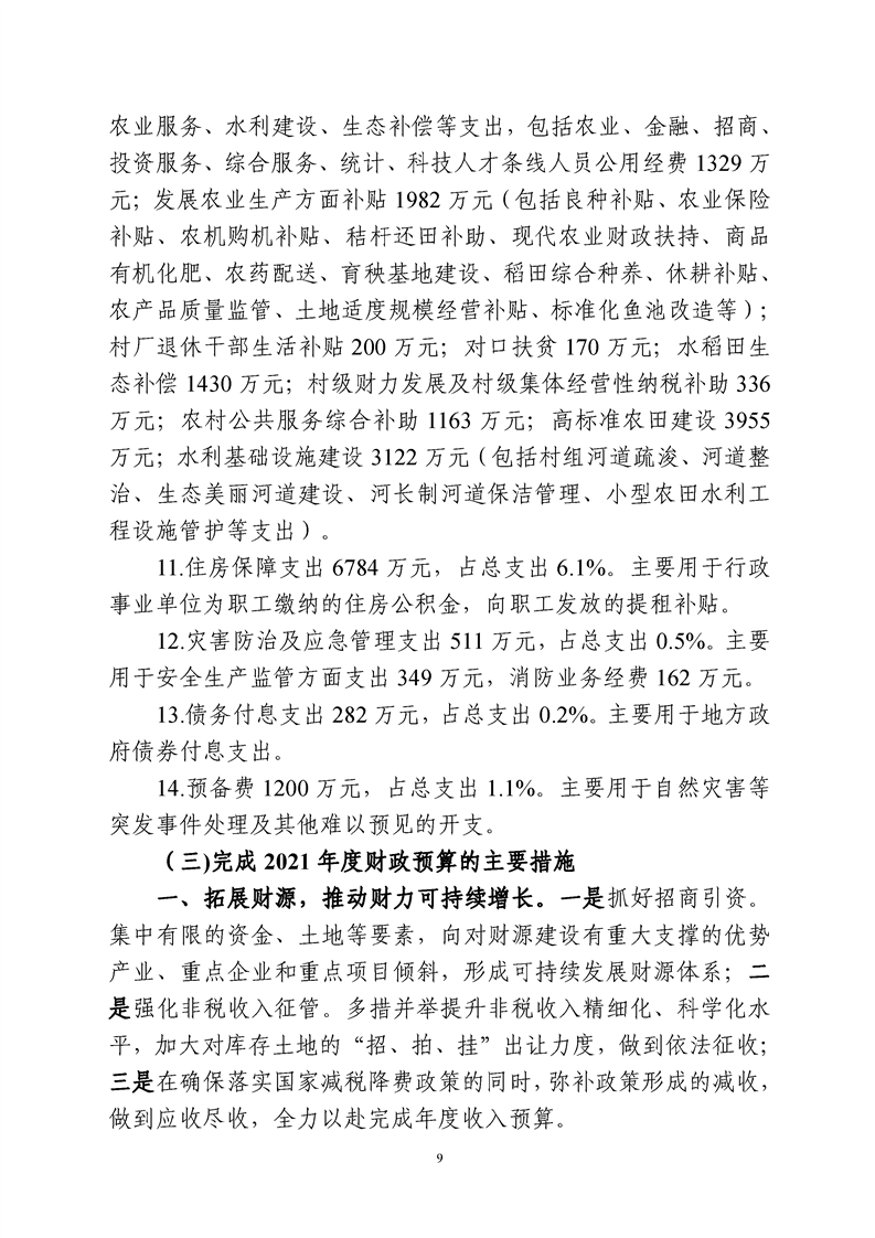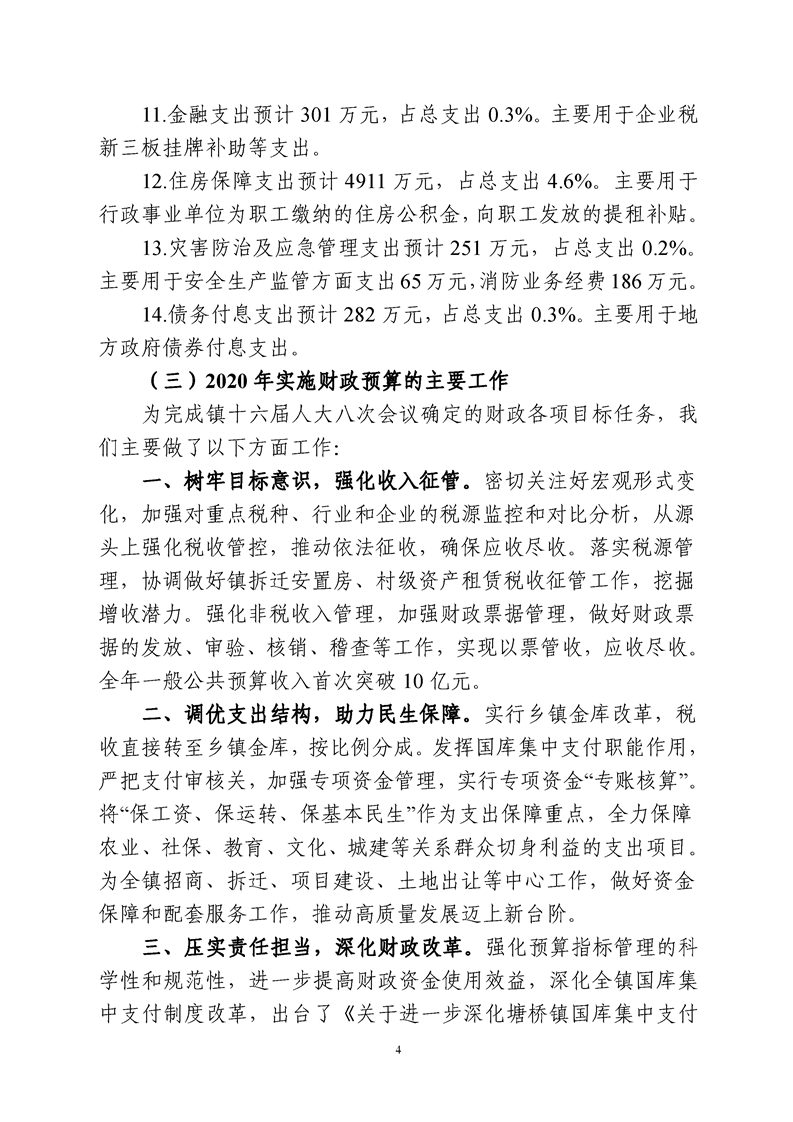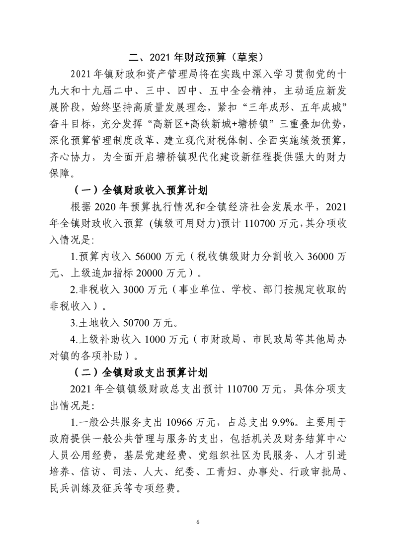 高新區(塘橋鎮)2020年財政預算執行情況和2021年財政預算(草案)報告