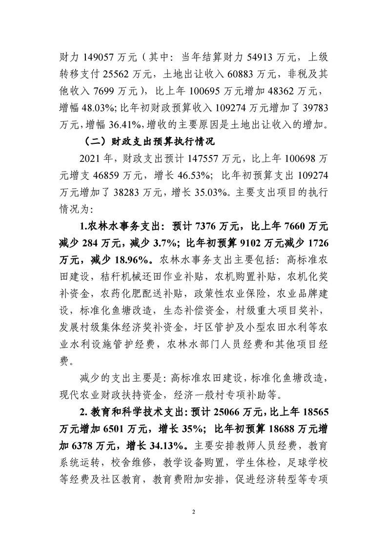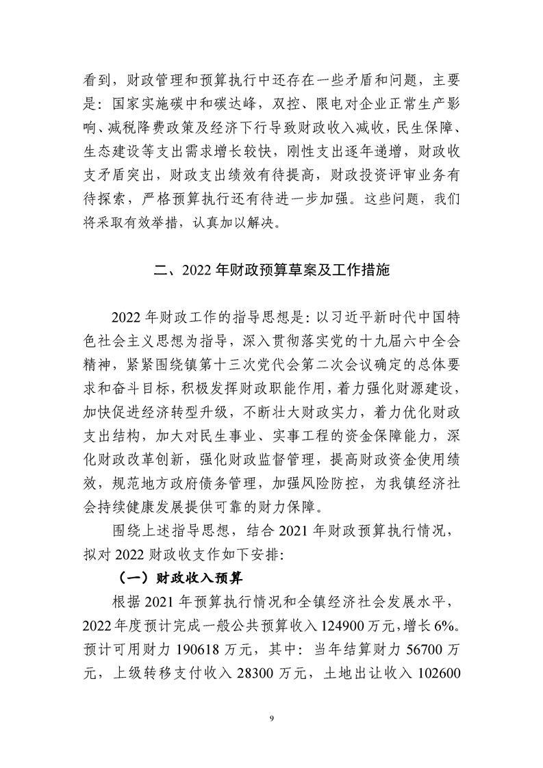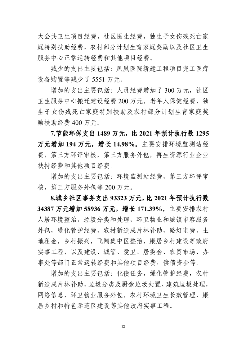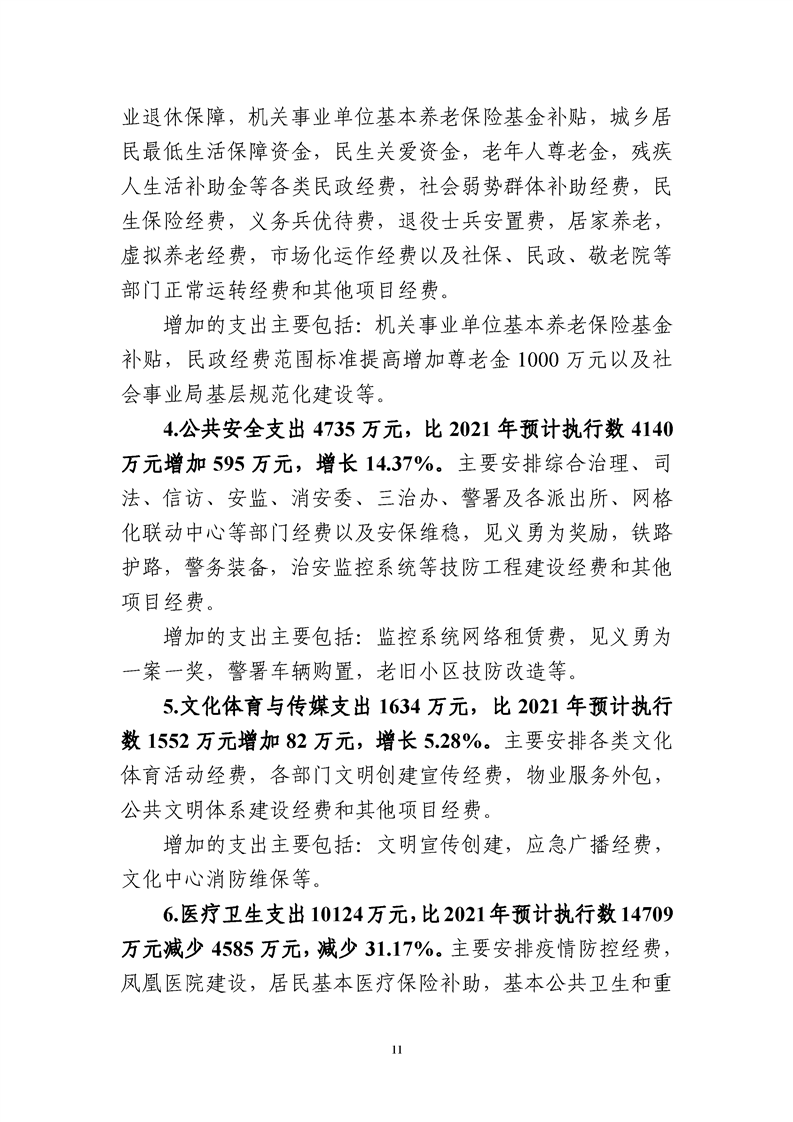 鳳凰鎮(zhèn)2021年財政預算執(zhí)行情況和2022年財政預算草案的報告