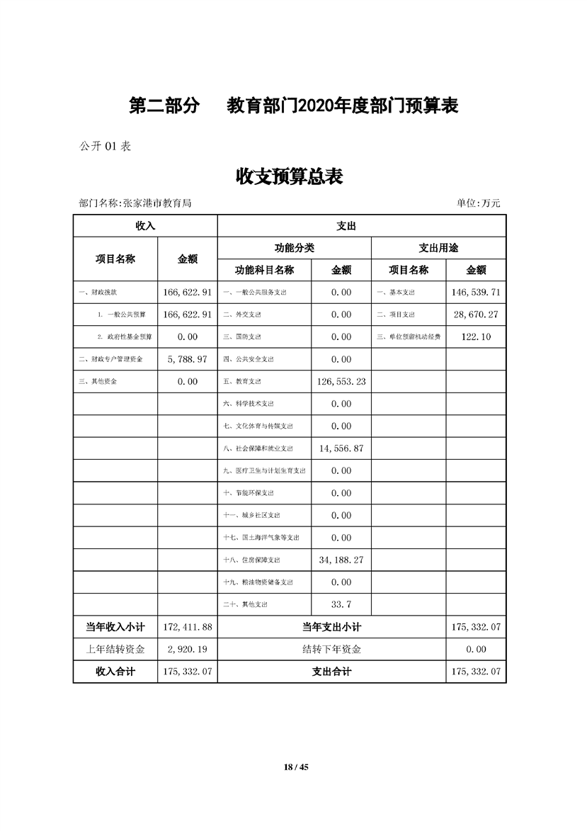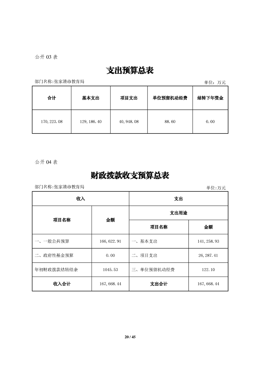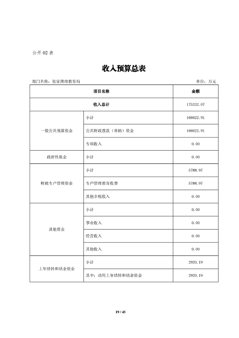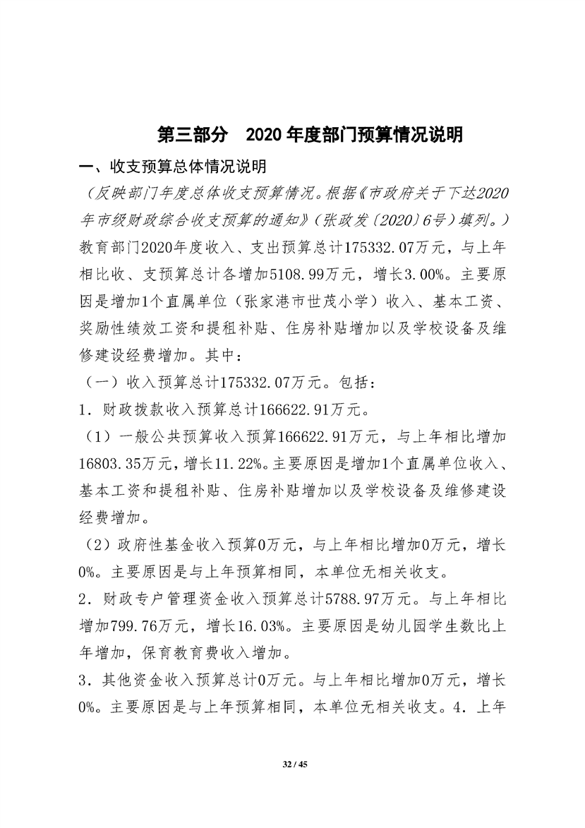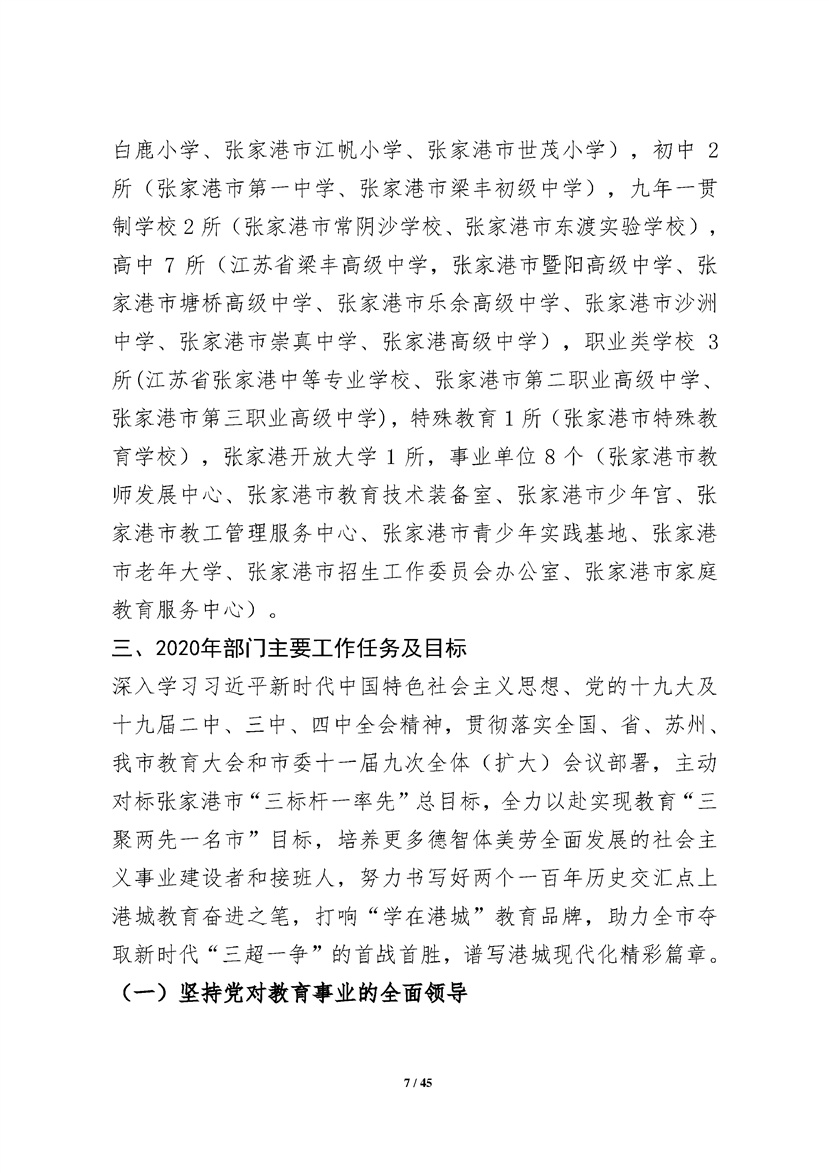 張家港市教育局2020年部門預算