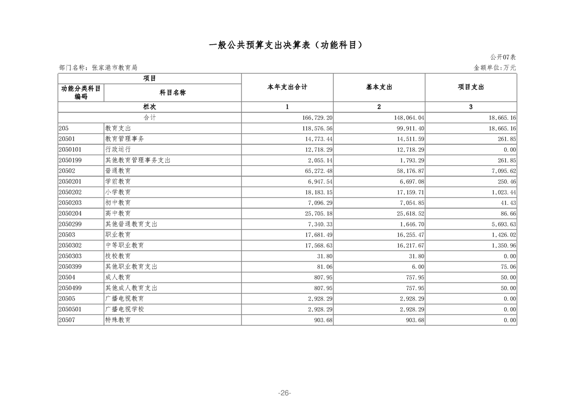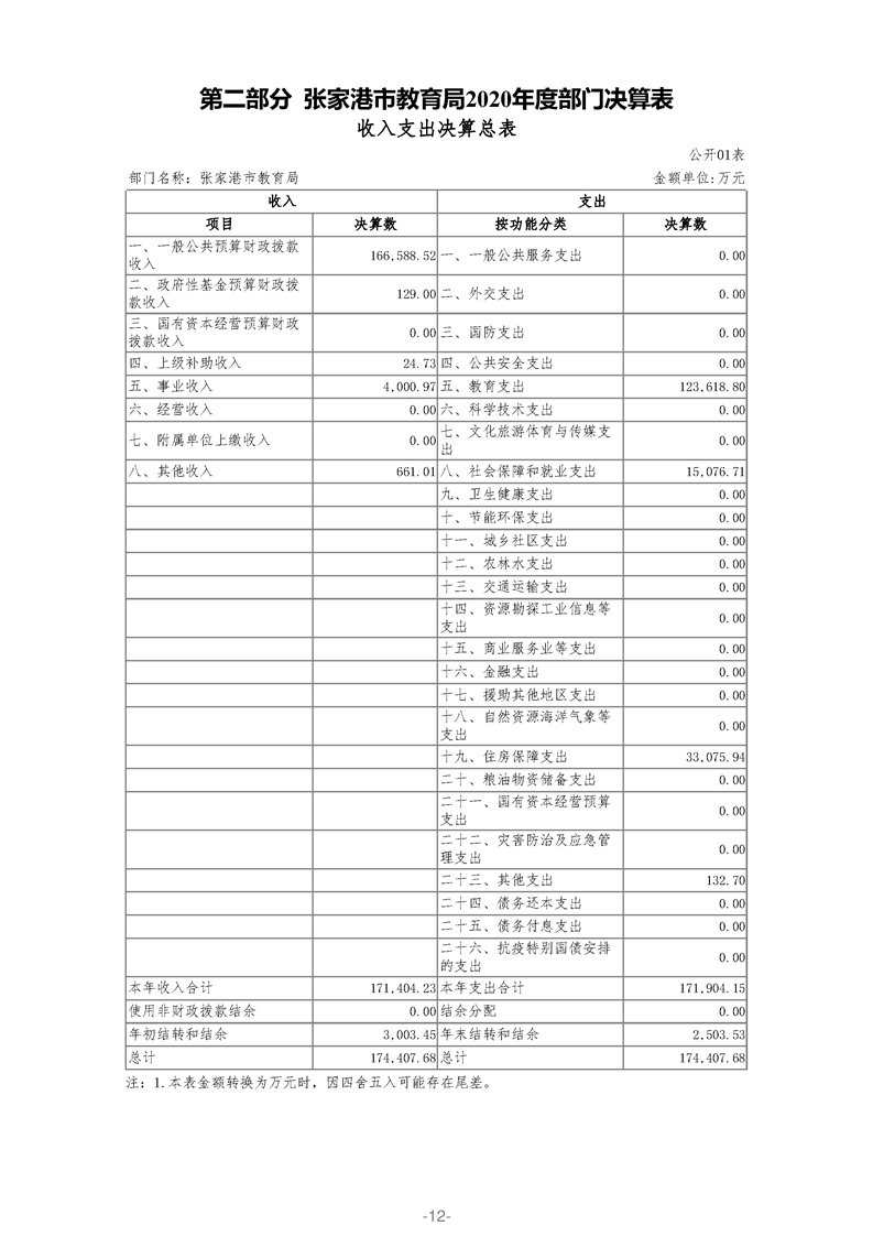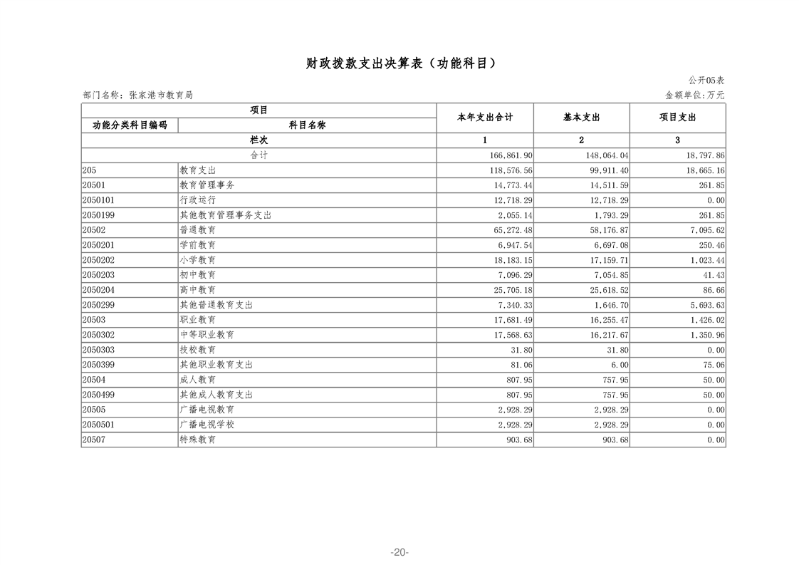 張家港市教育局2020年度部門決算