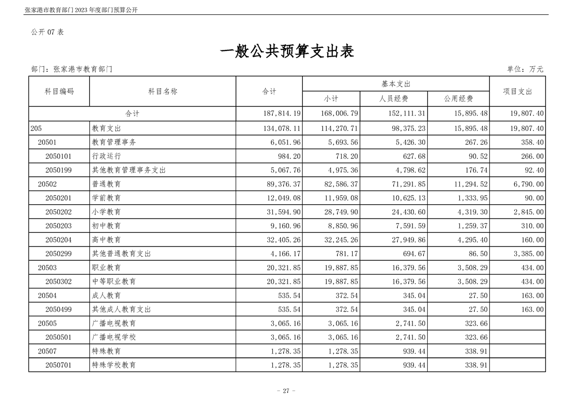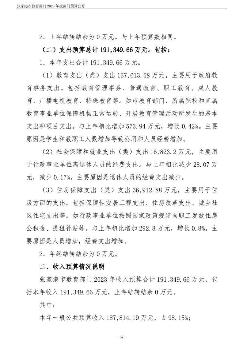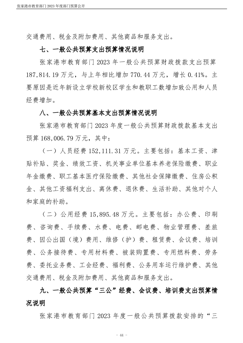 張家港市教育部門2023年度部門預算公開