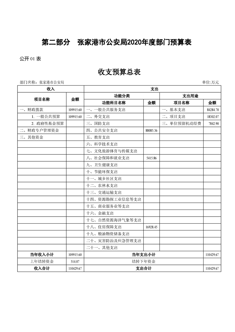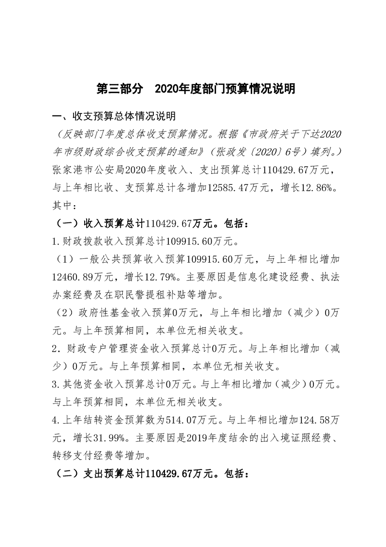 張家港市公安局2020年度部門預算公開