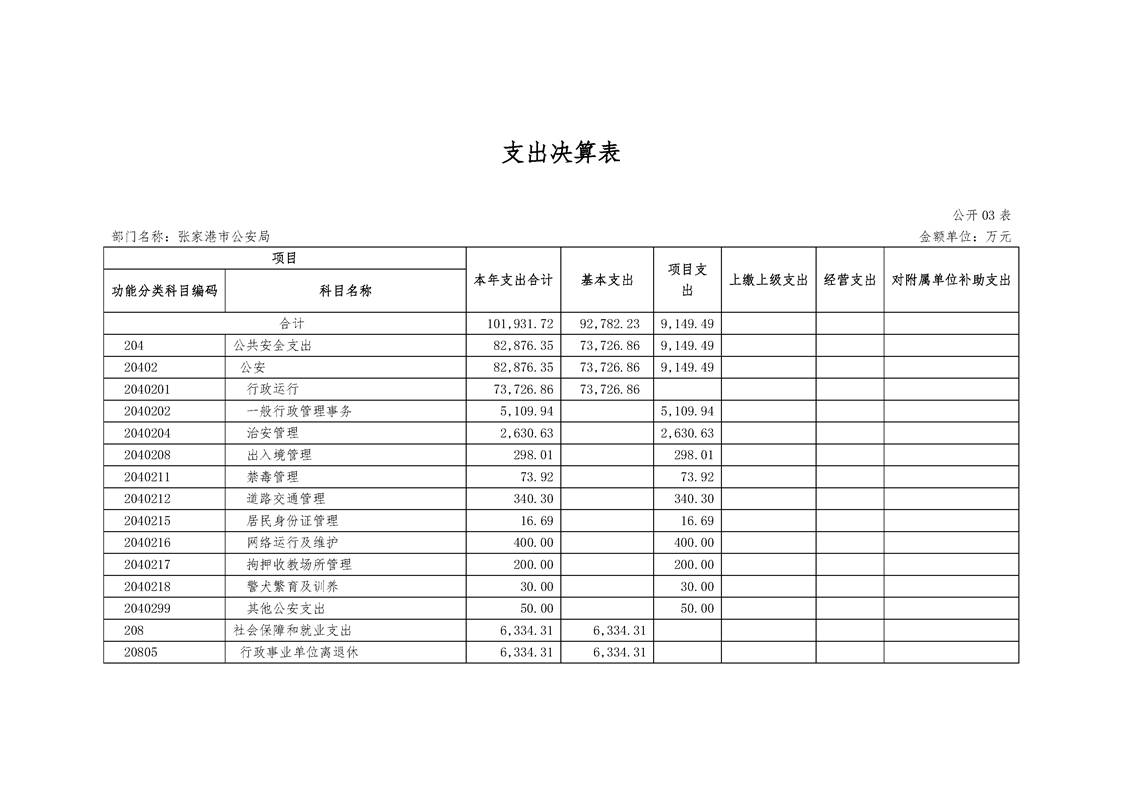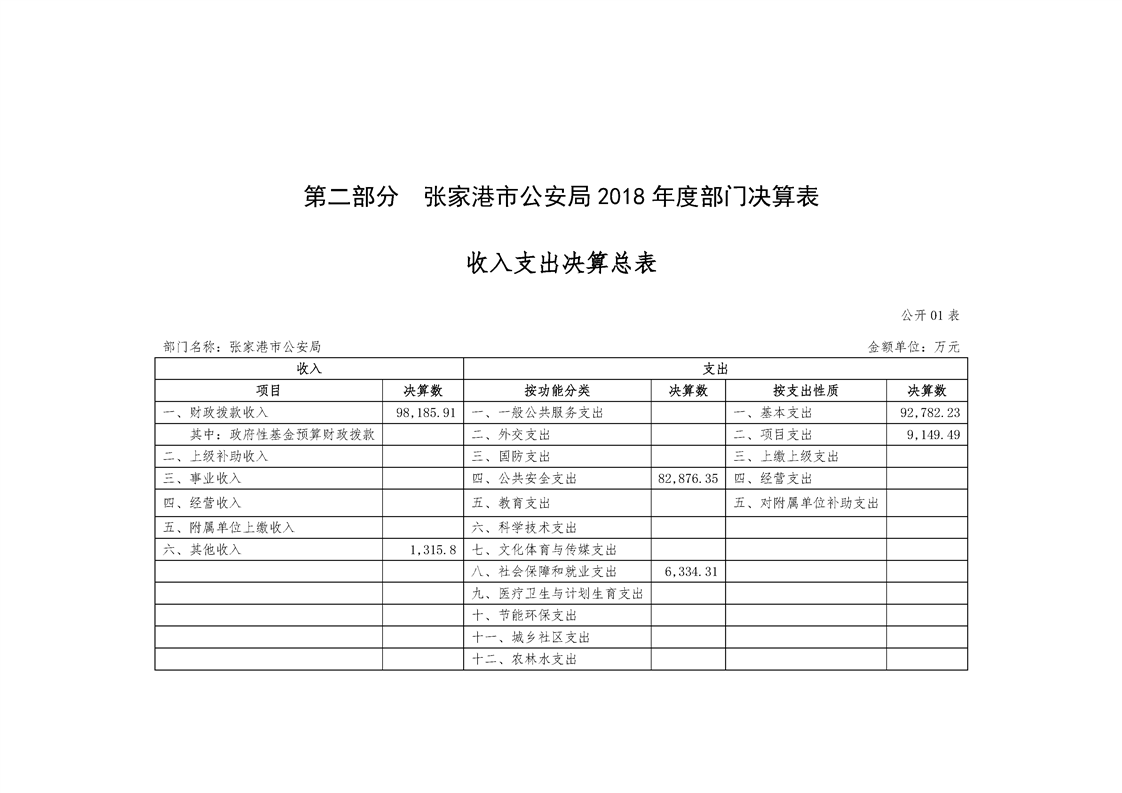 張家港市公安局2018年度部門決算公開