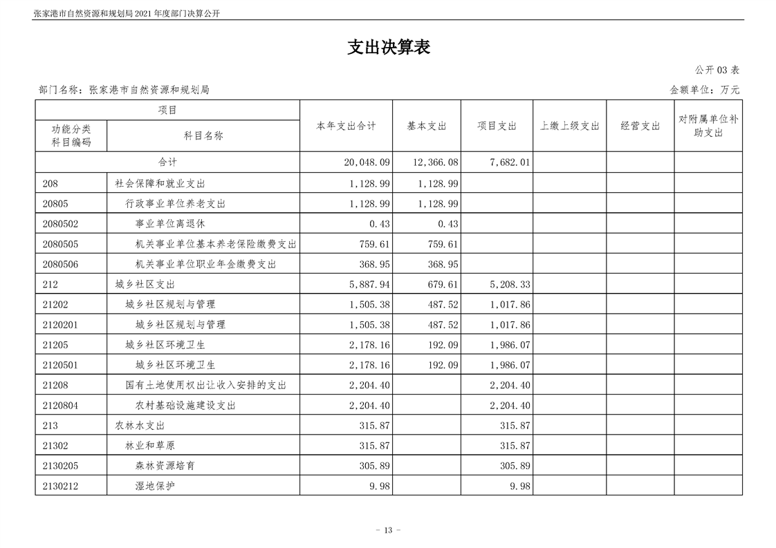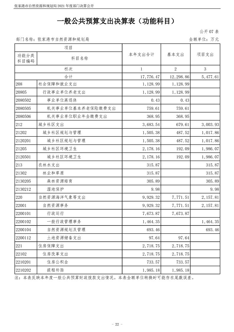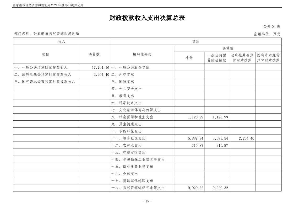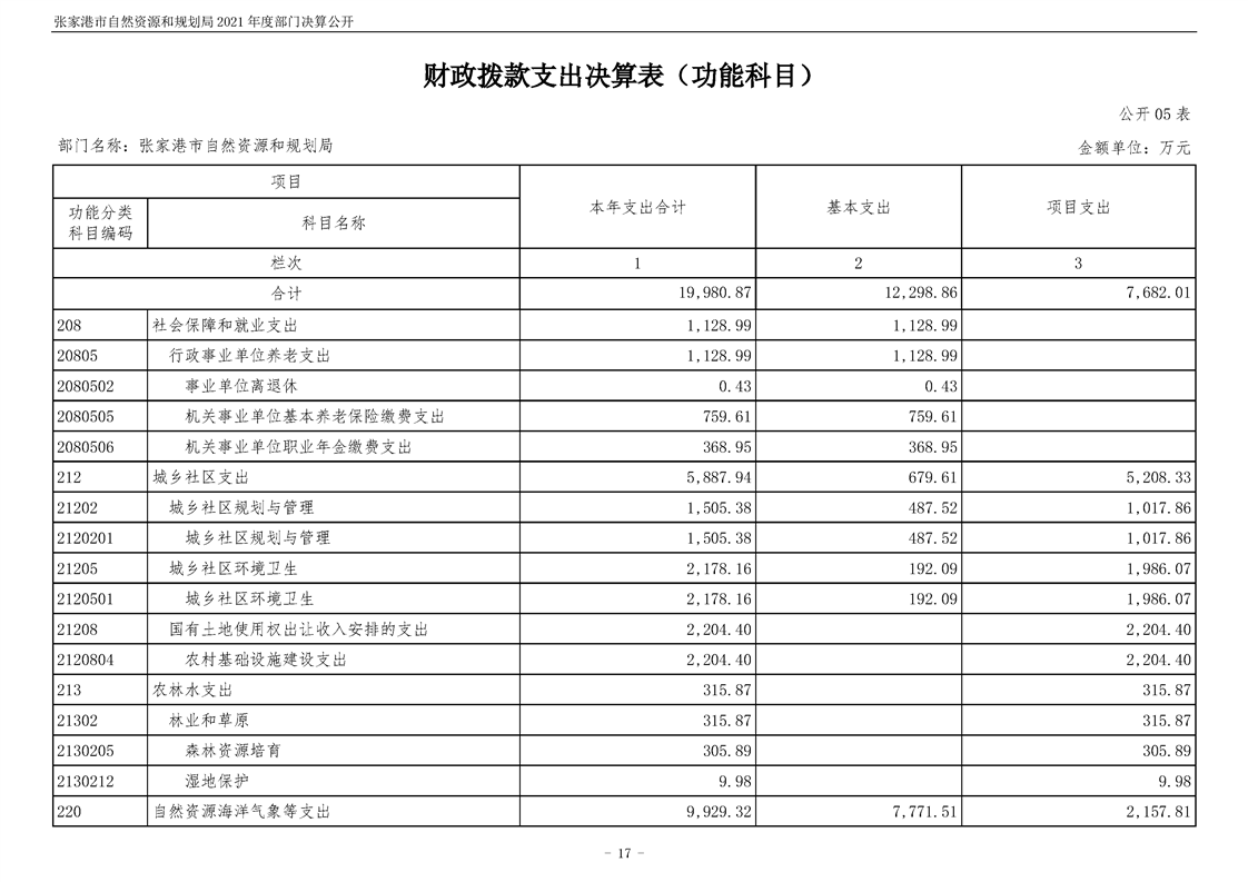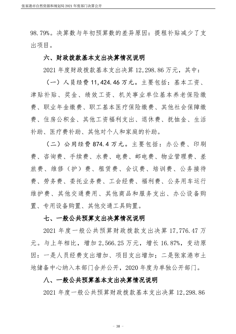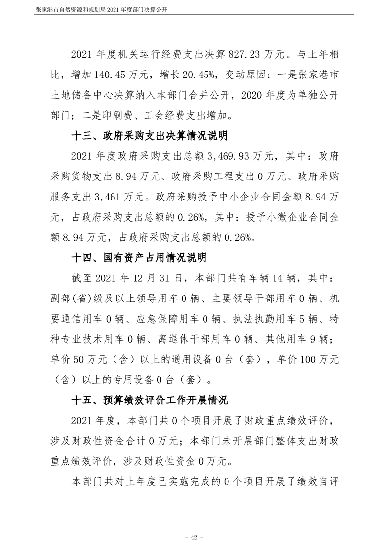 張家港市自然資源和規劃局2021年度部門決算公開