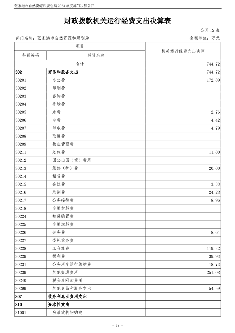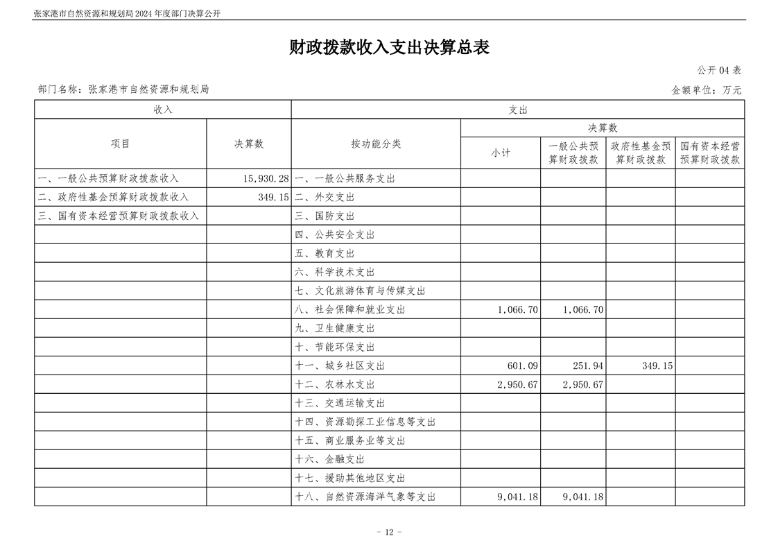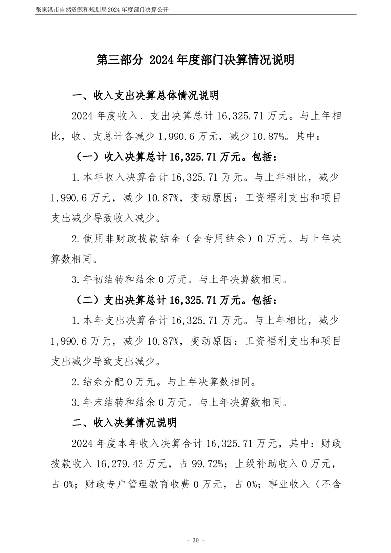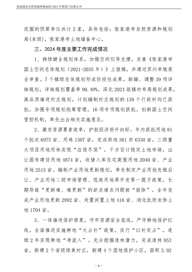 張家港市自然資源和規(guī)劃局2024年度部門決算公開