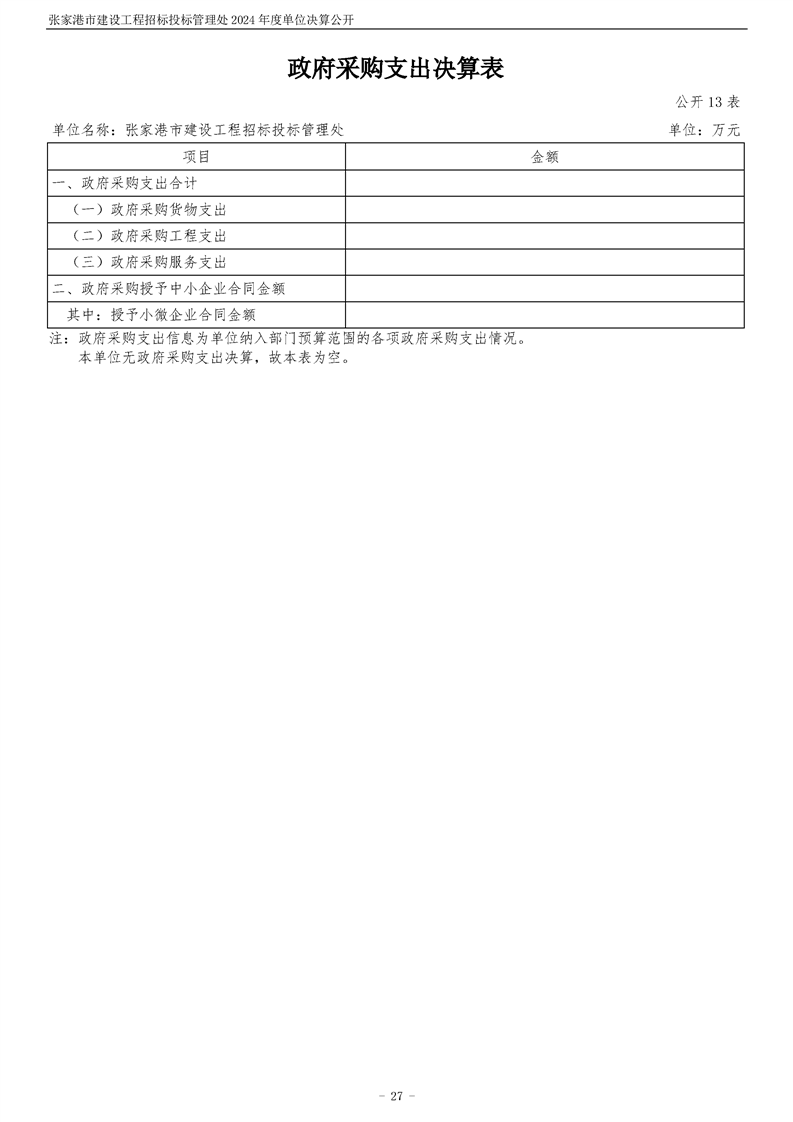 2024年度張家港市建設(shè)工程招標(biāo)投標(biāo)管理處單位決算公開