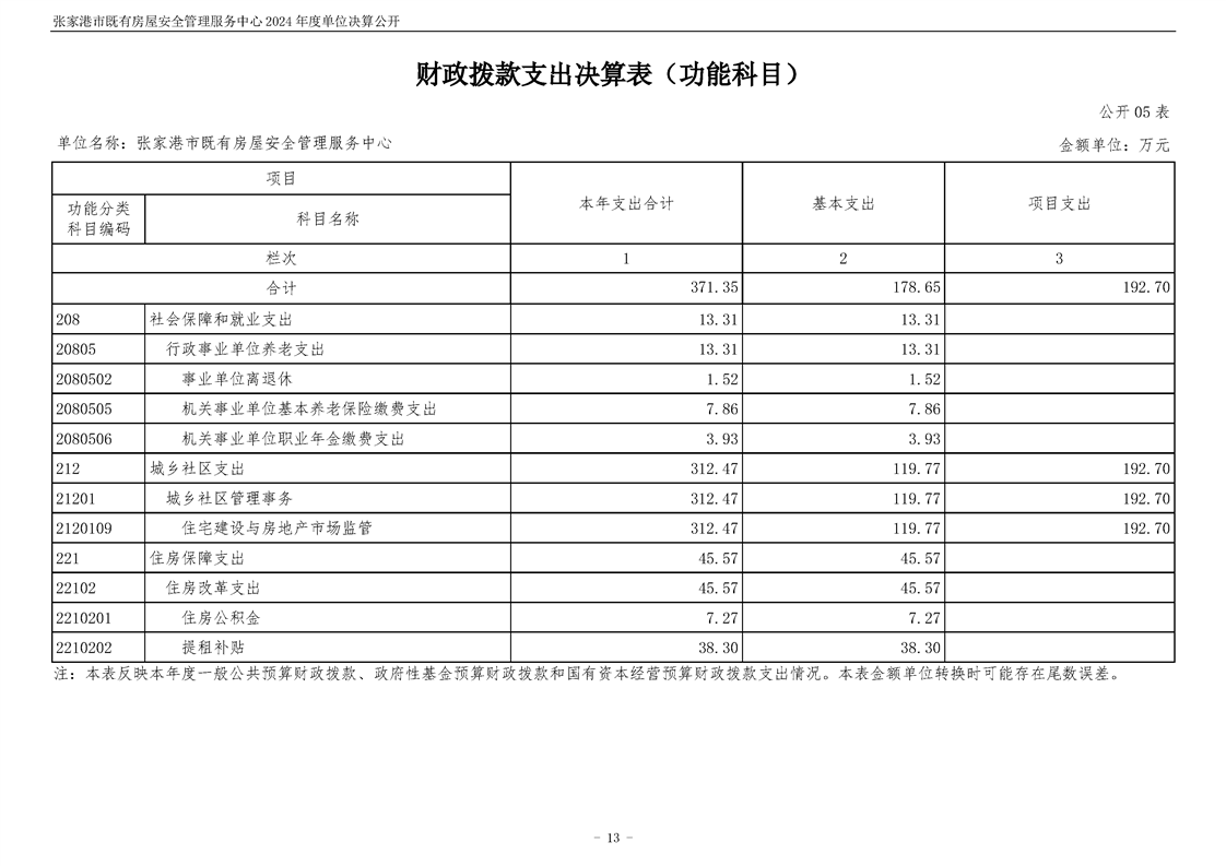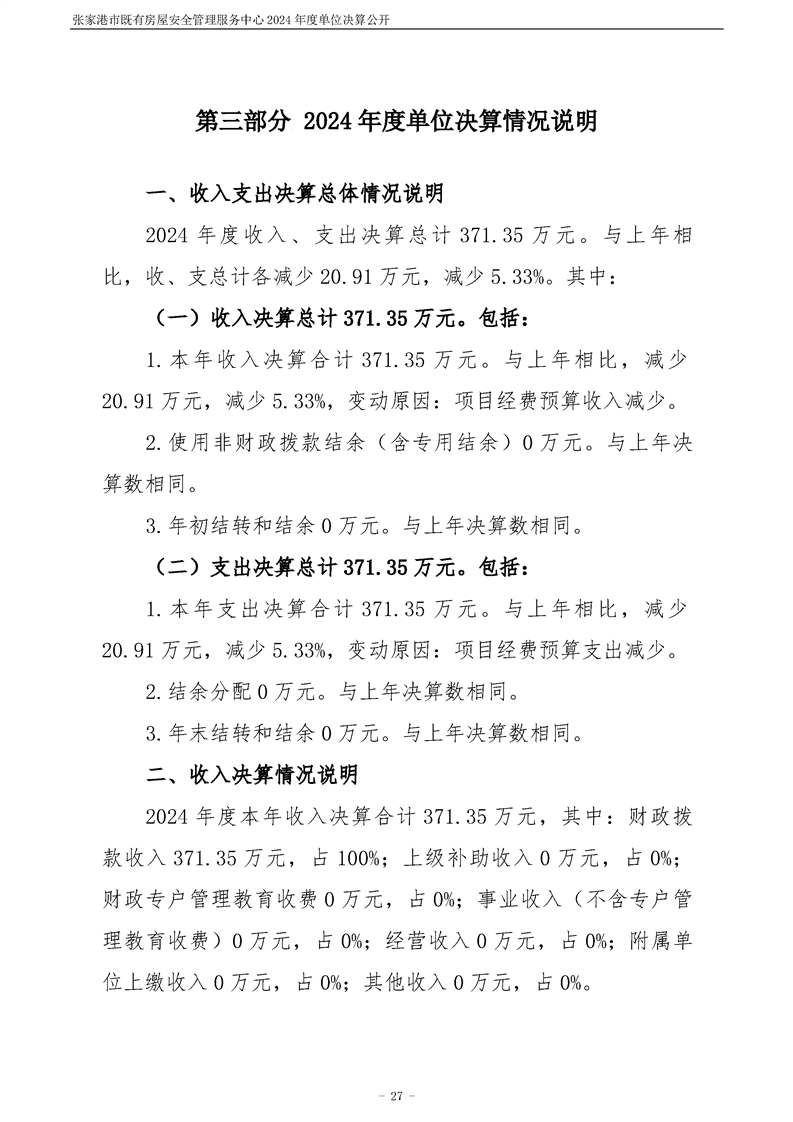 2024年度張家港市既有房屋安全管理服務中心單位決算公開