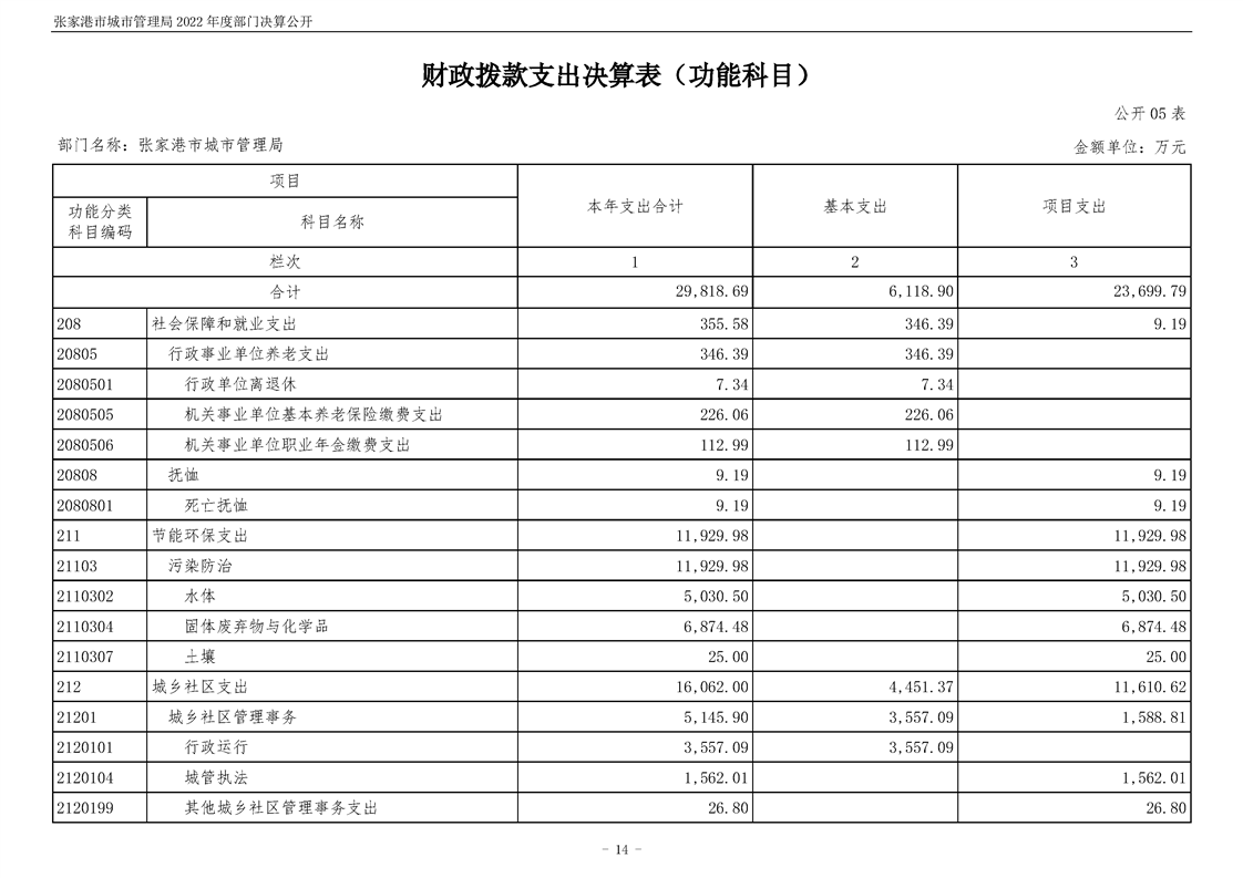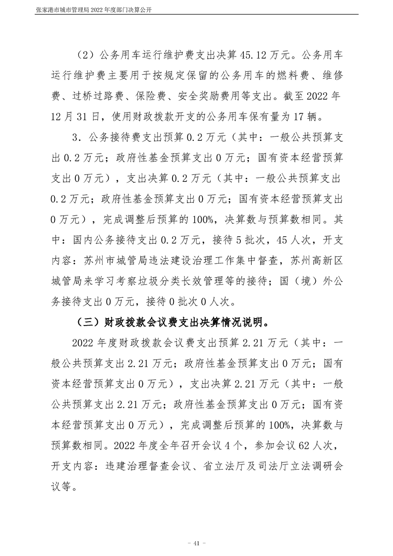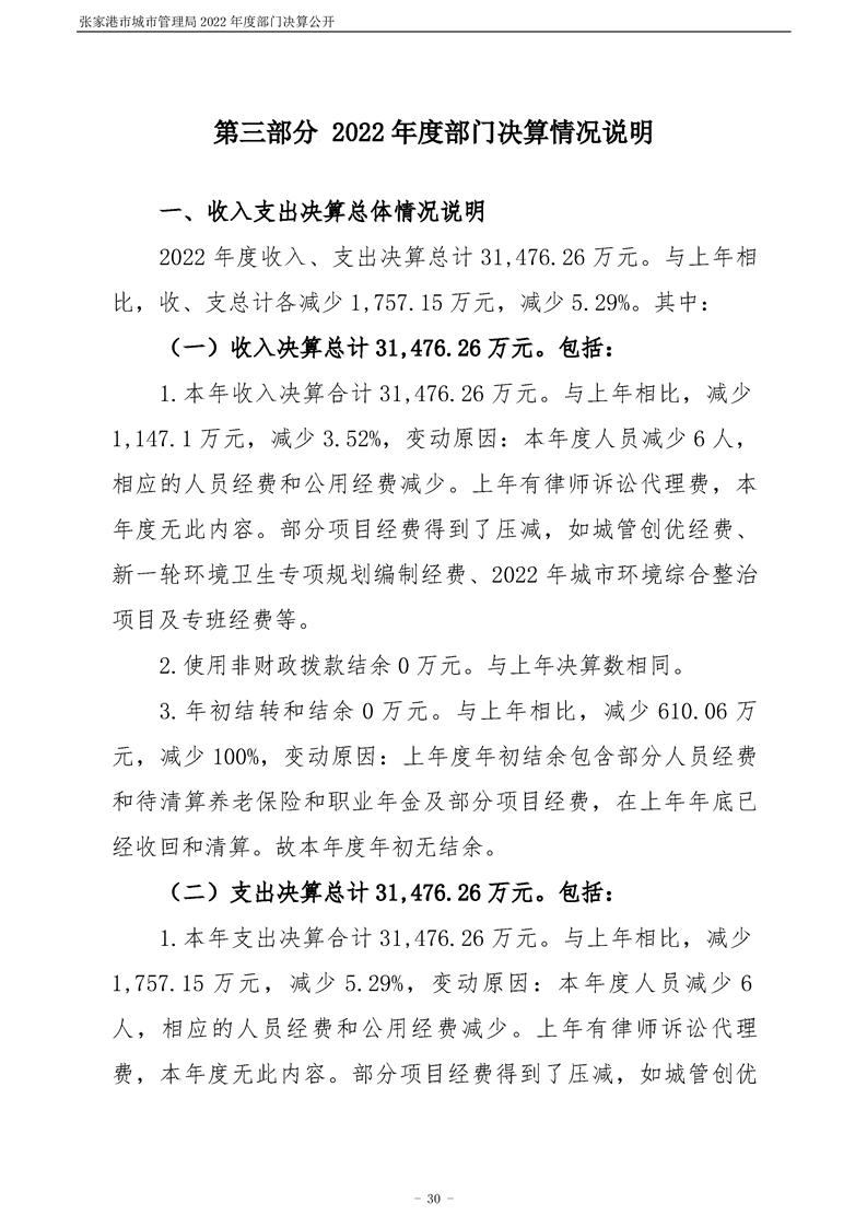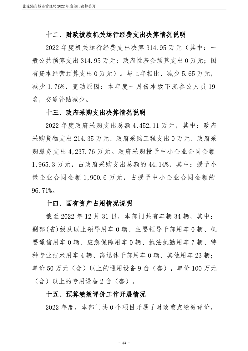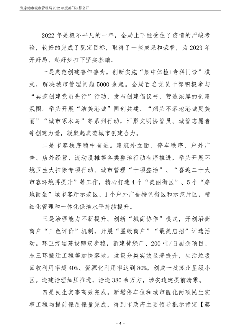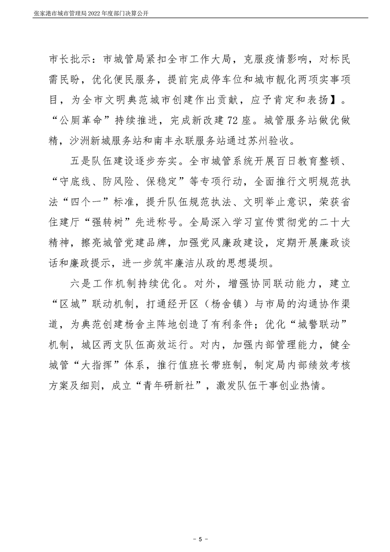 張家港市城市管理局2022年度部門決算公開