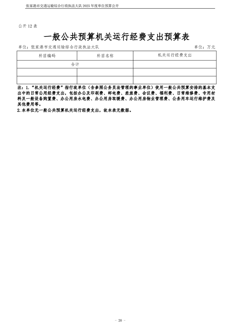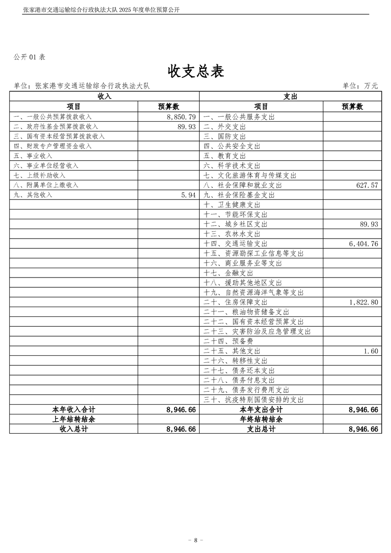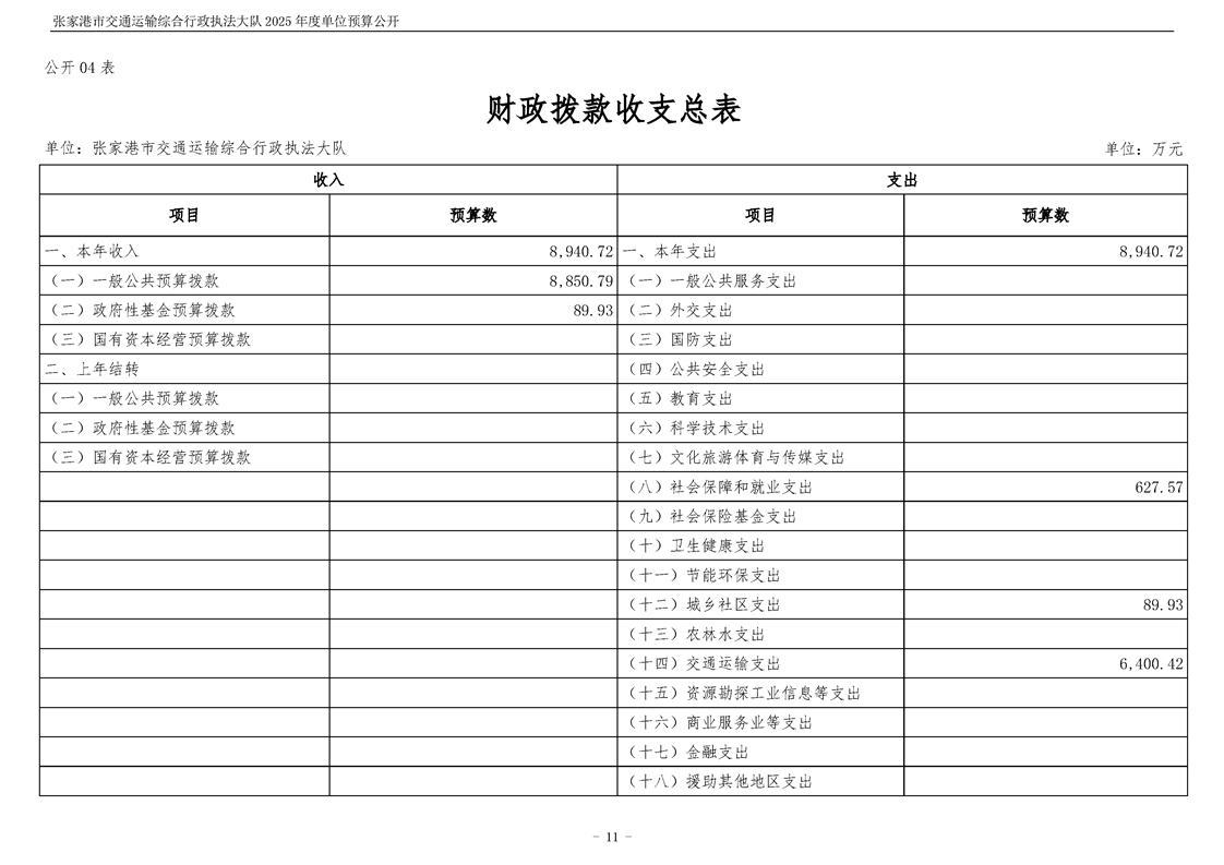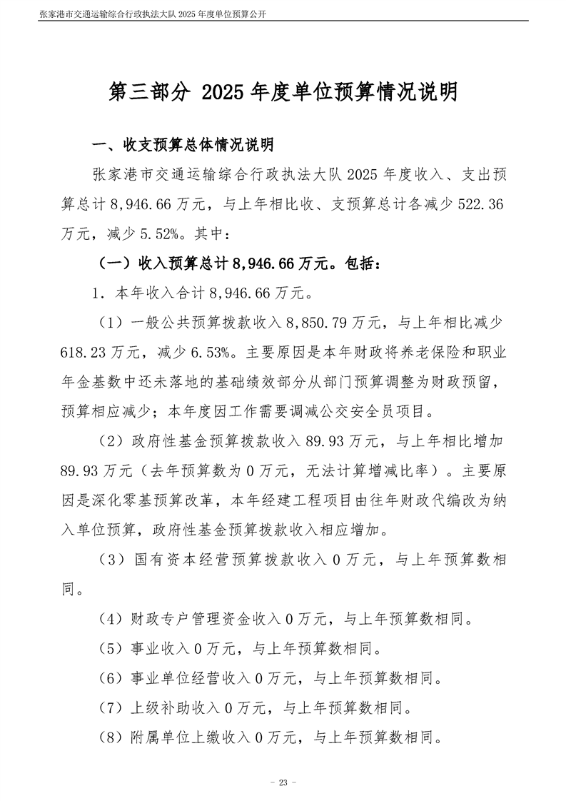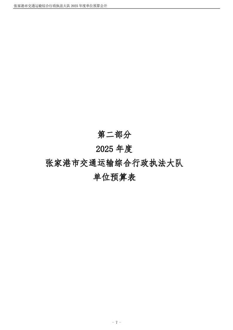 張家港市交通運輸綜合行政執(zhí)法大隊2025年度單位預算公開