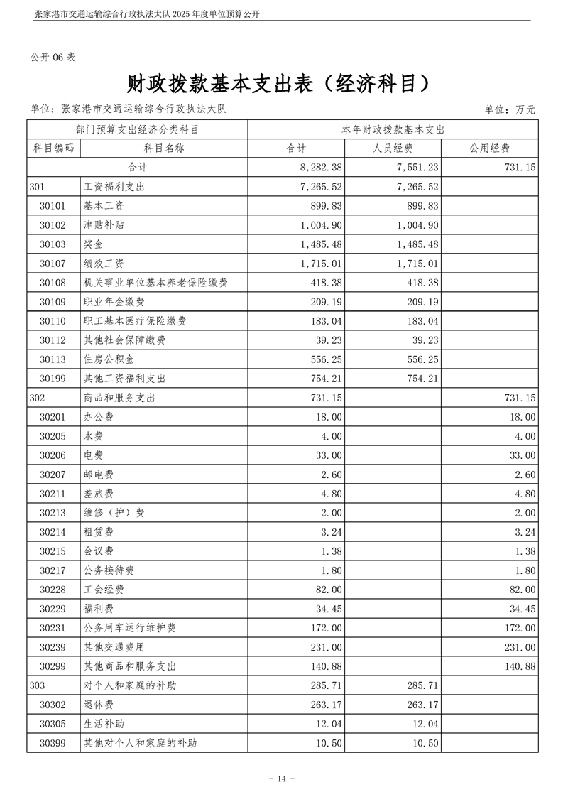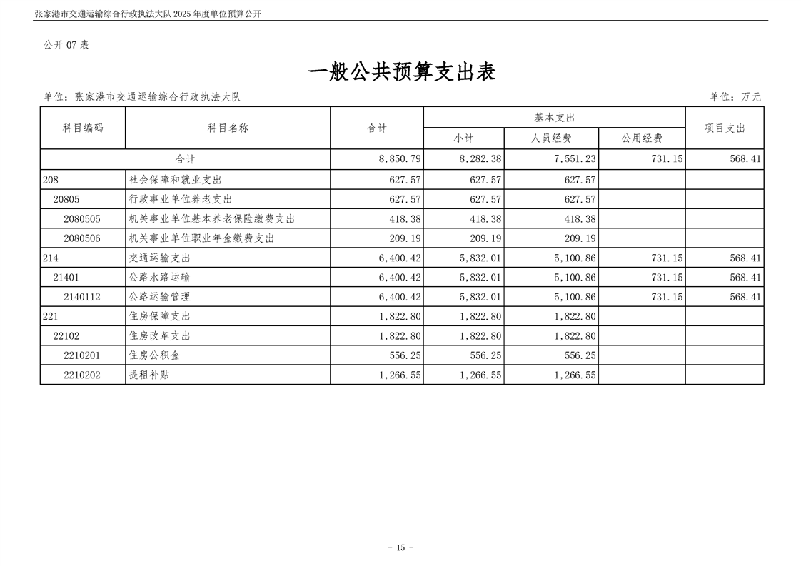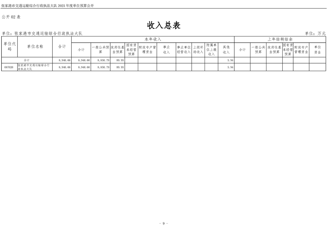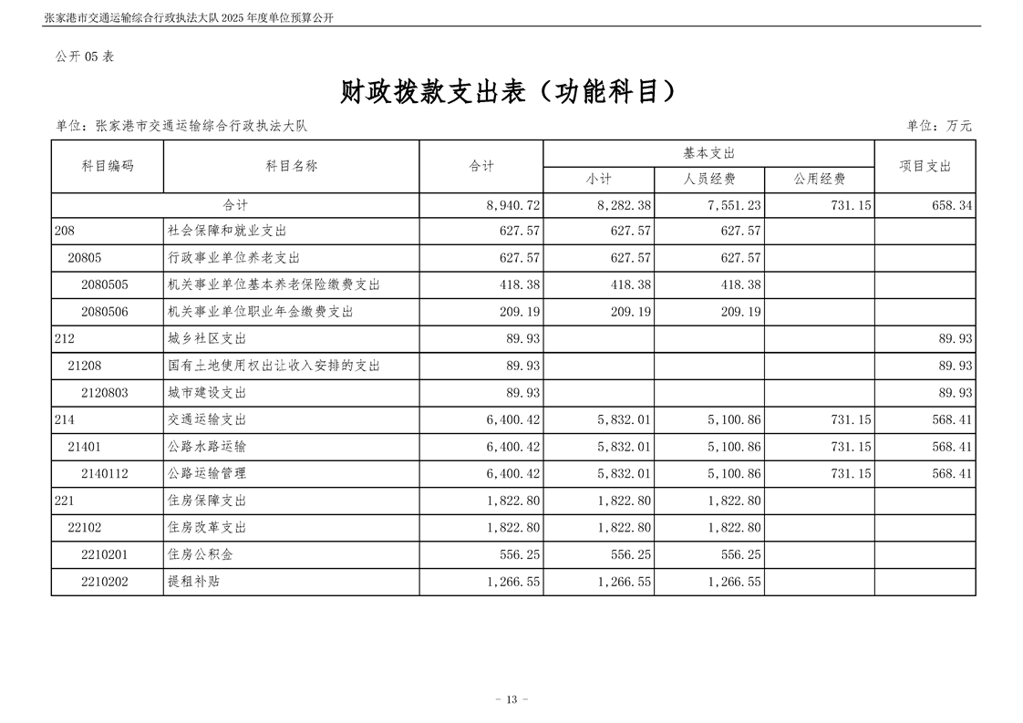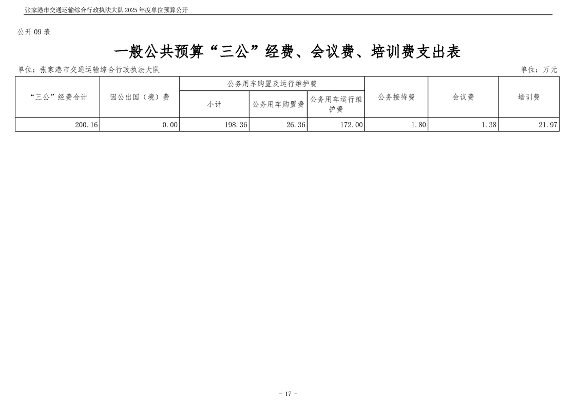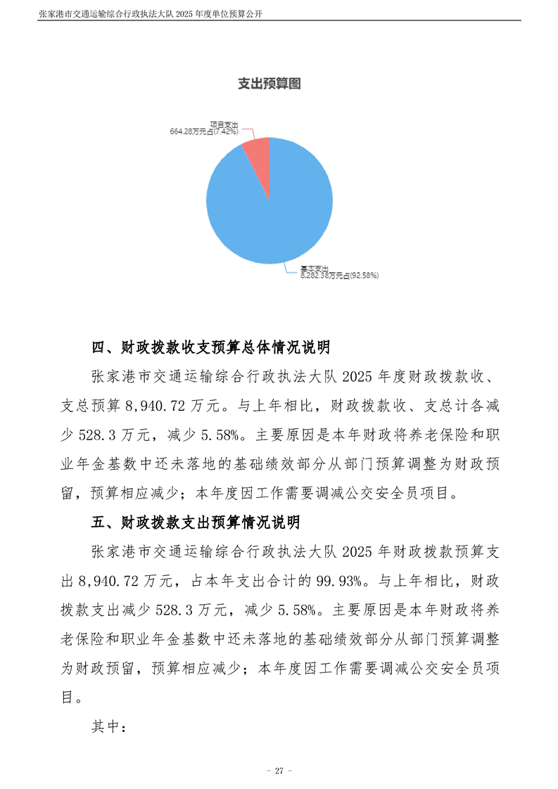 張家港市交通運輸綜合行政執(zhí)法大隊2025年度單位預算公開