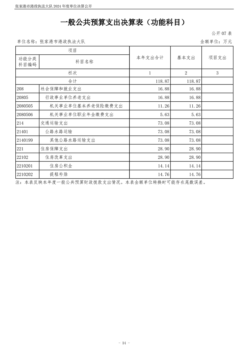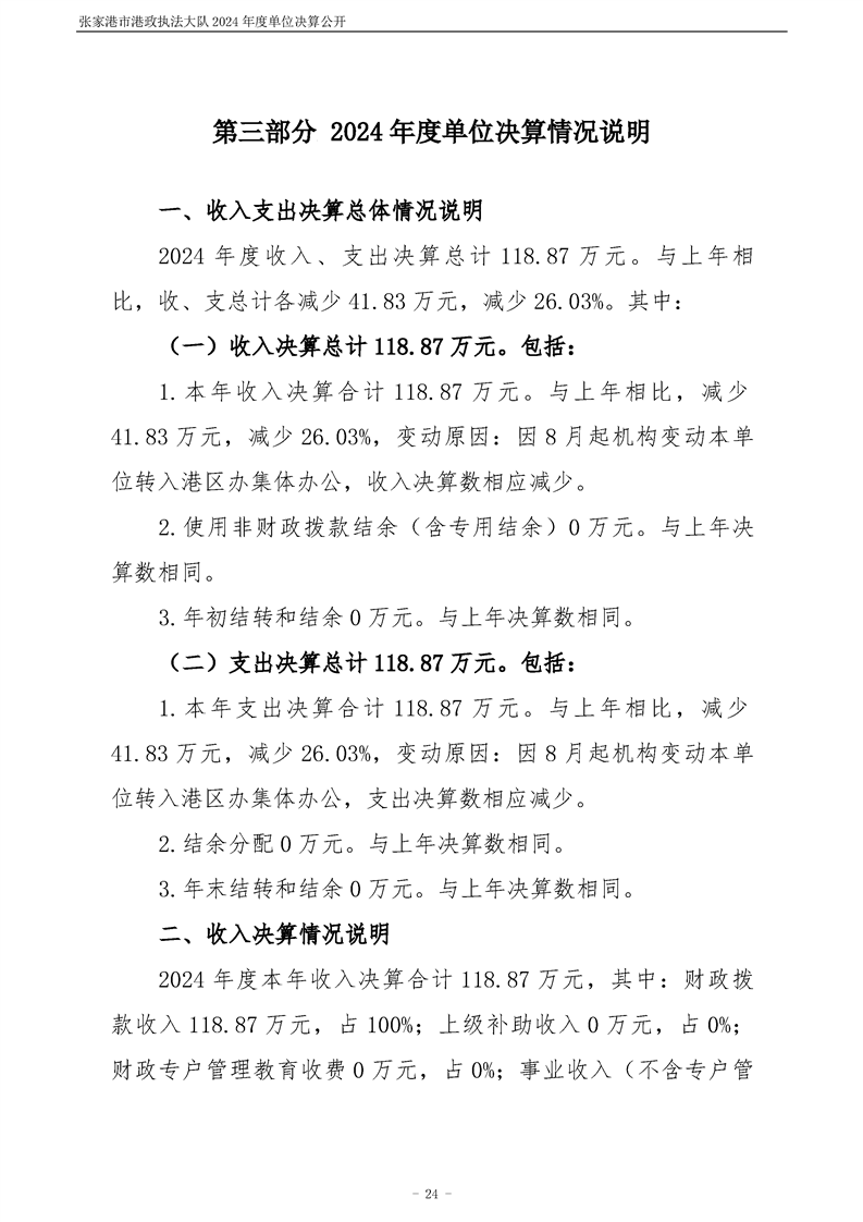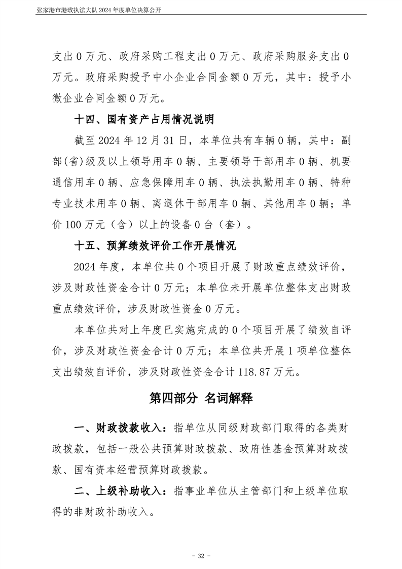 張家港市港政執(zhí)法大隊2024年度單位決算公開