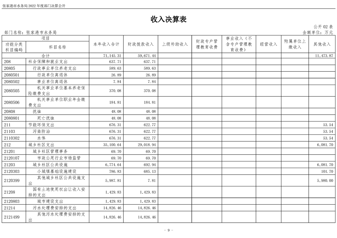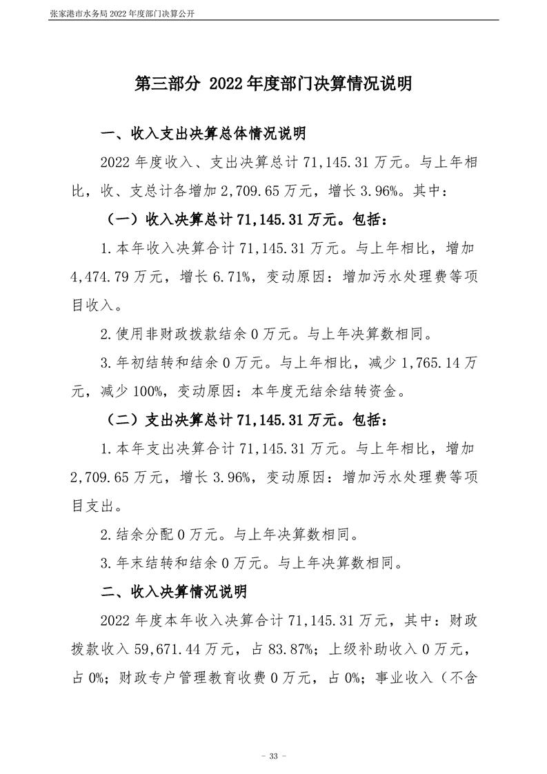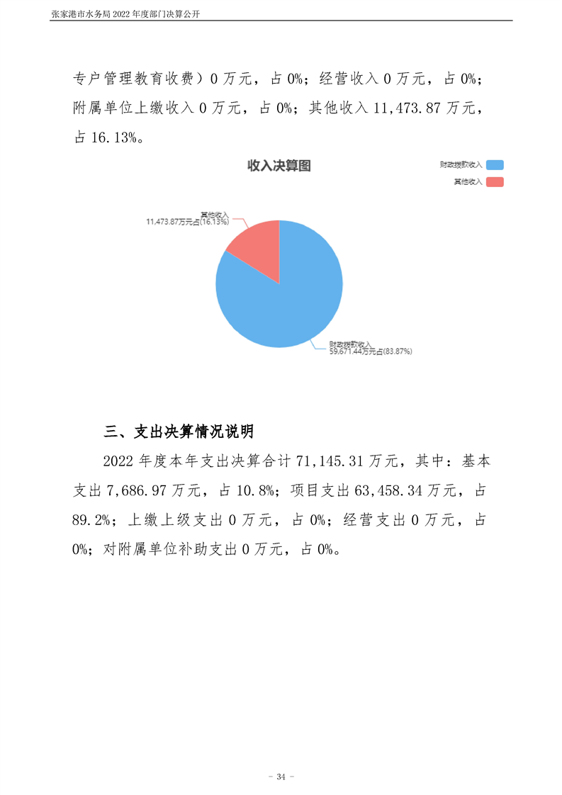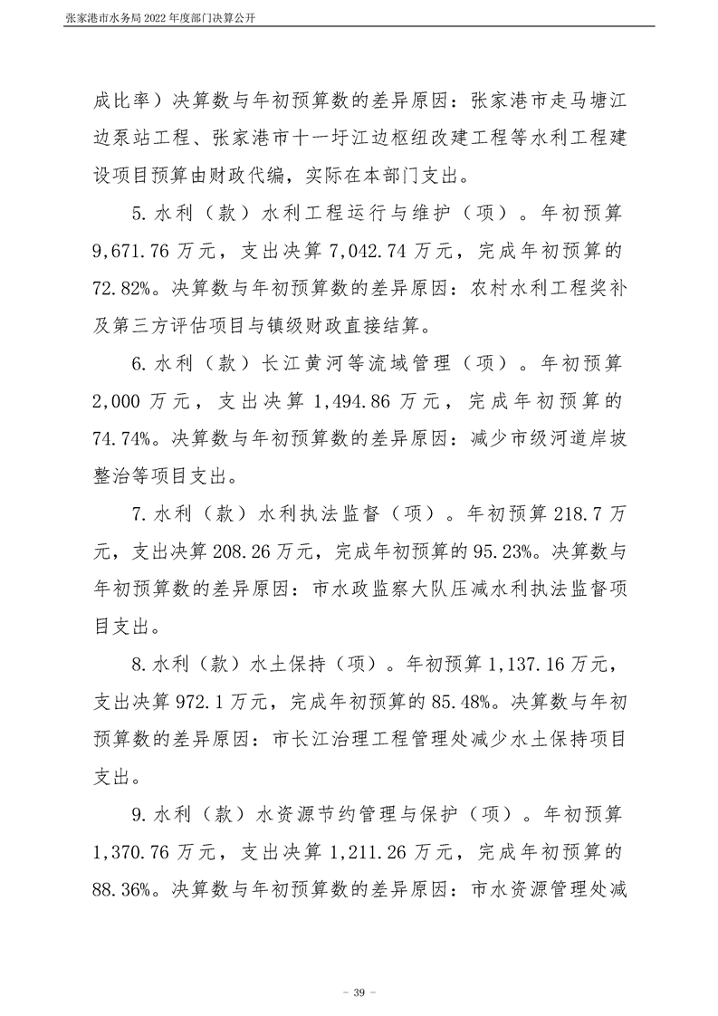 張家港市水務(wù)局2022年度部門決算公開