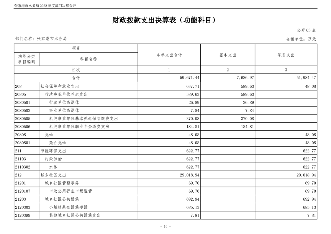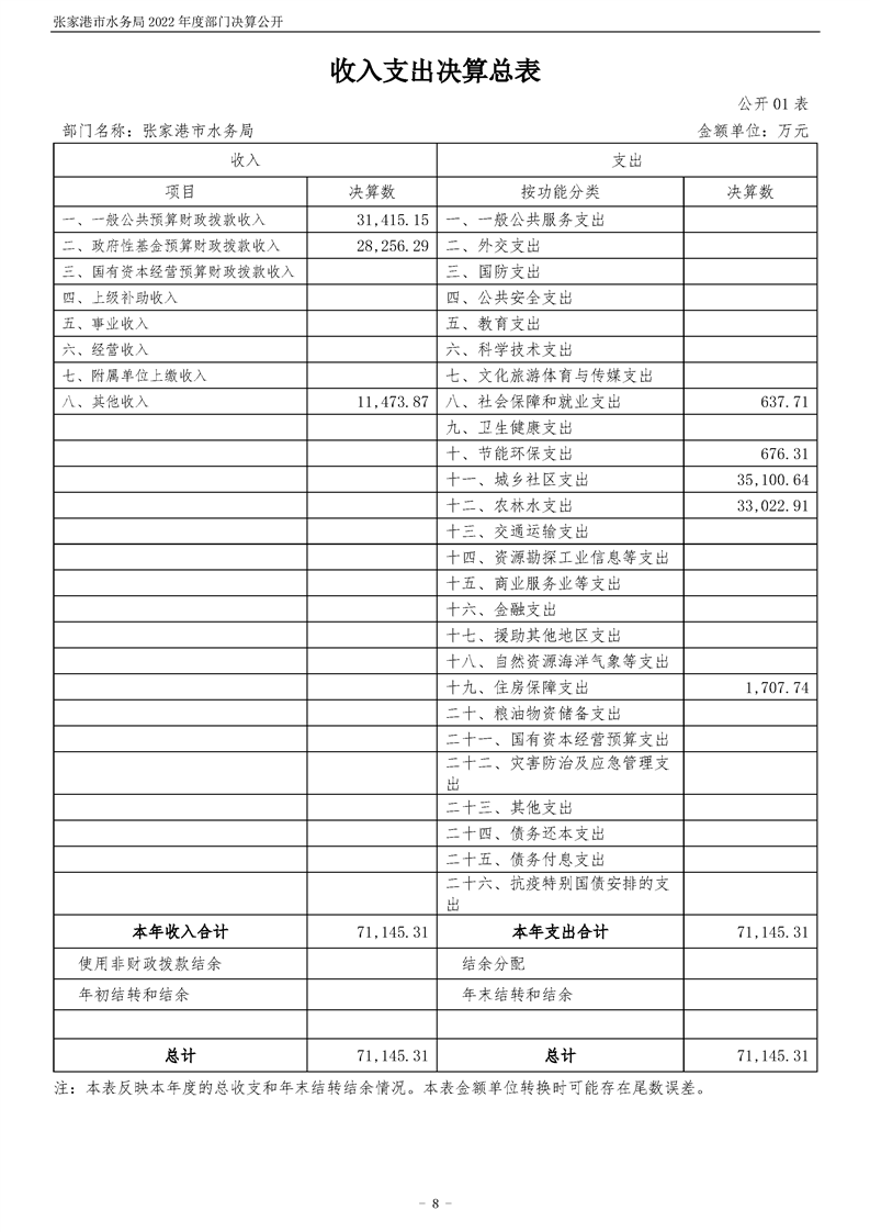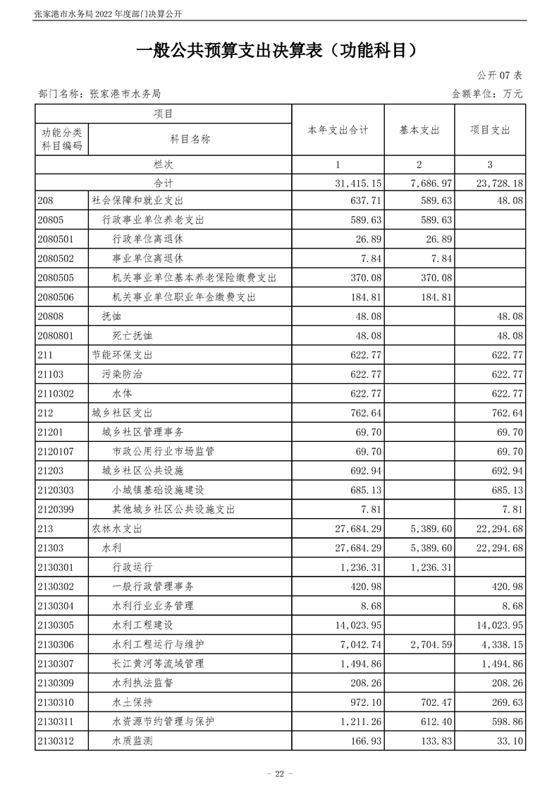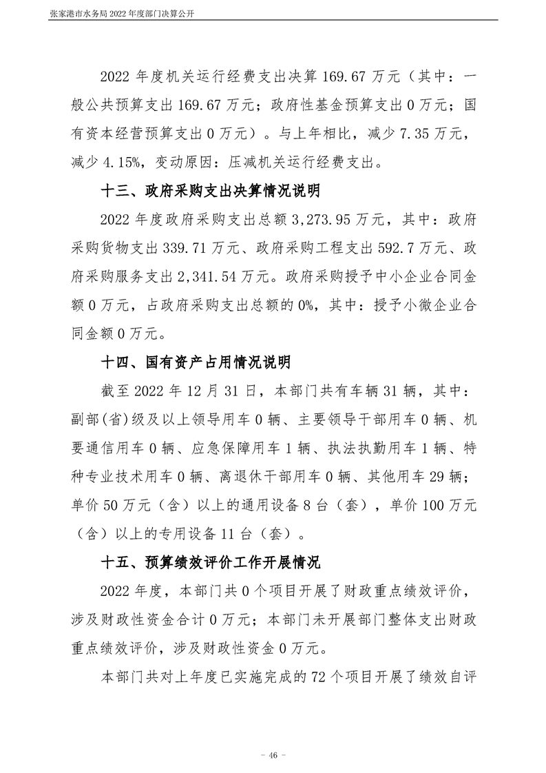 張家港市水務(wù)局2022年度部門決算公開