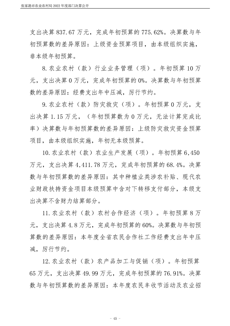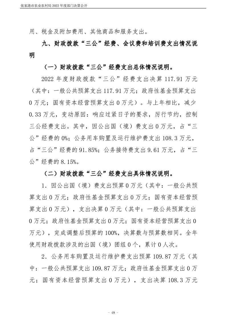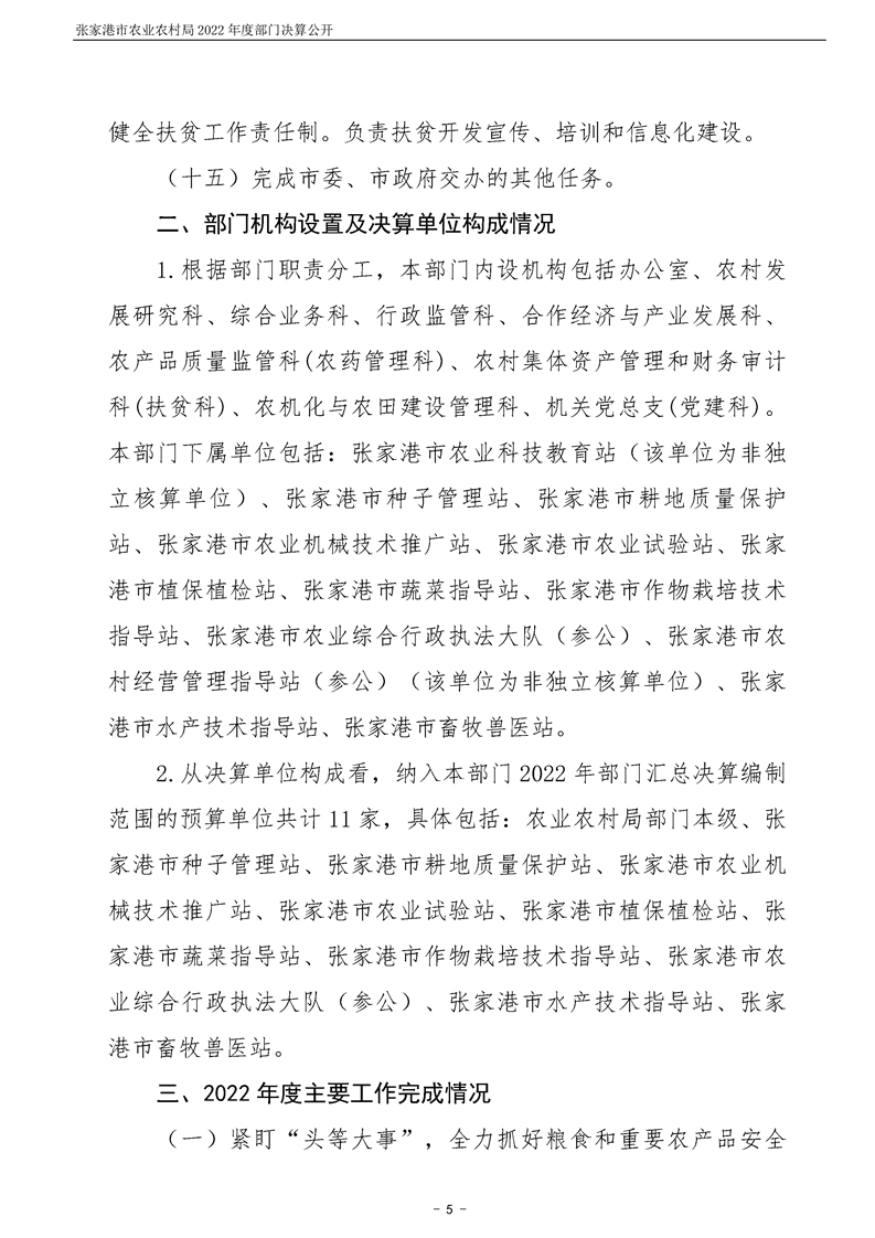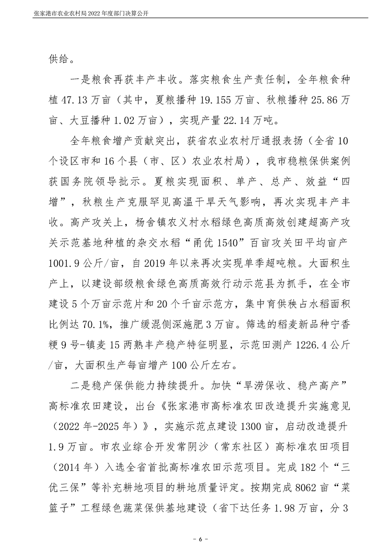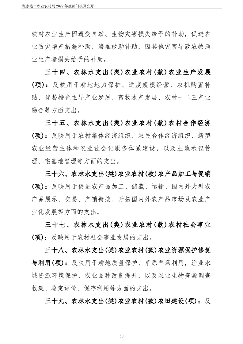 張家港市農業農村局2022年度部門決算公開