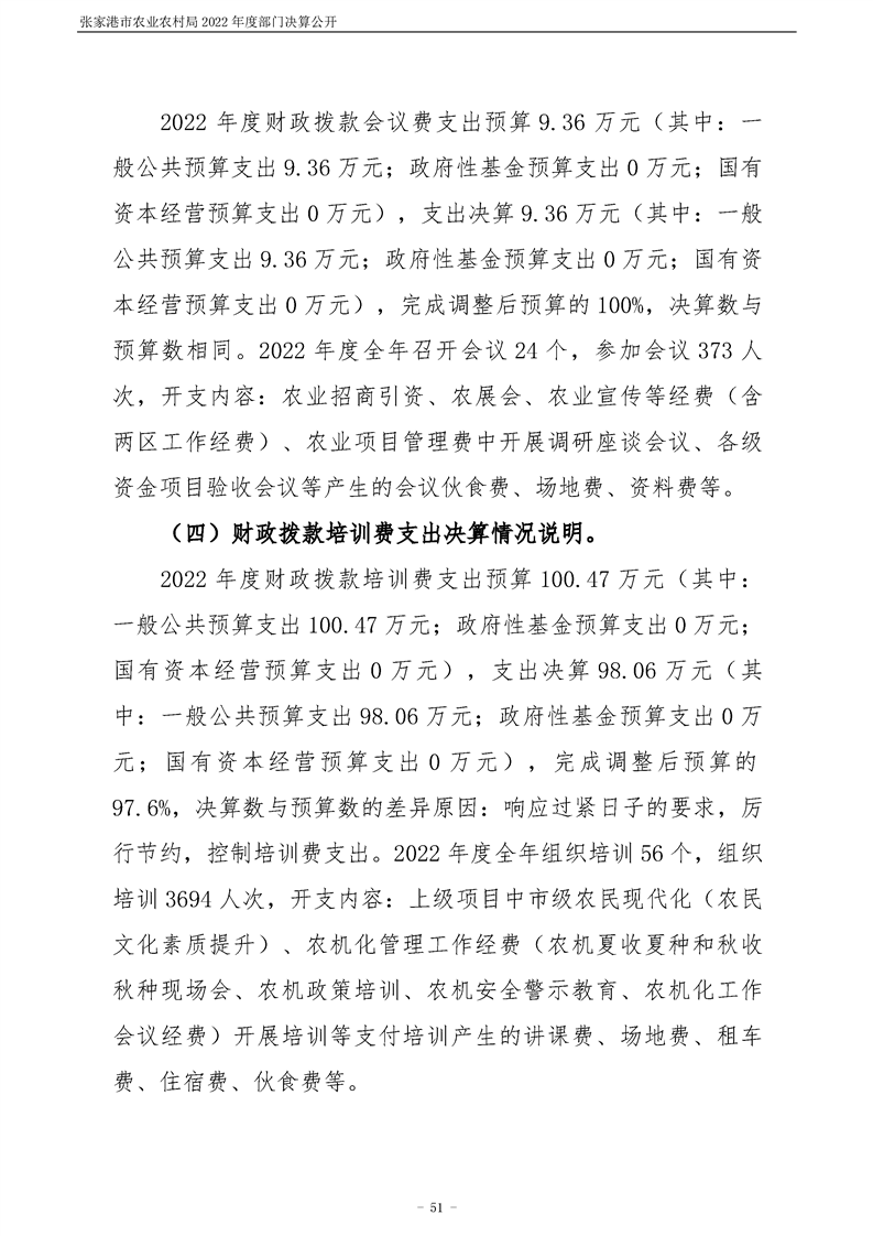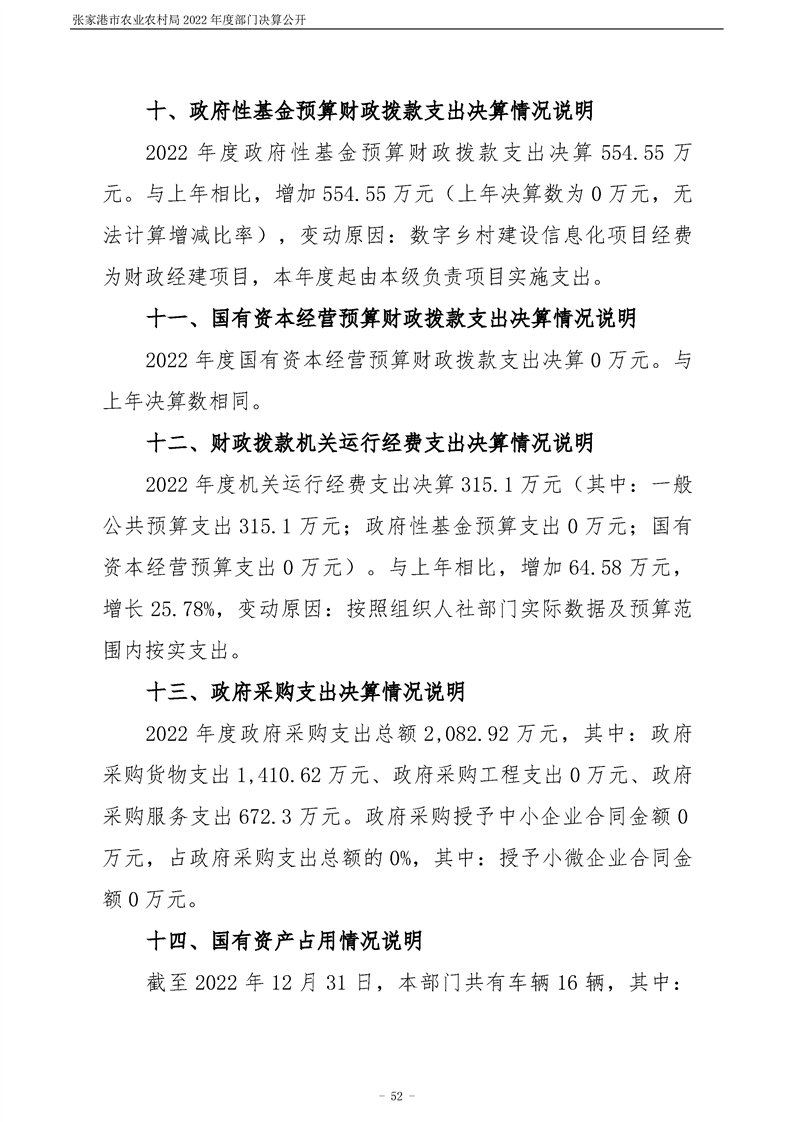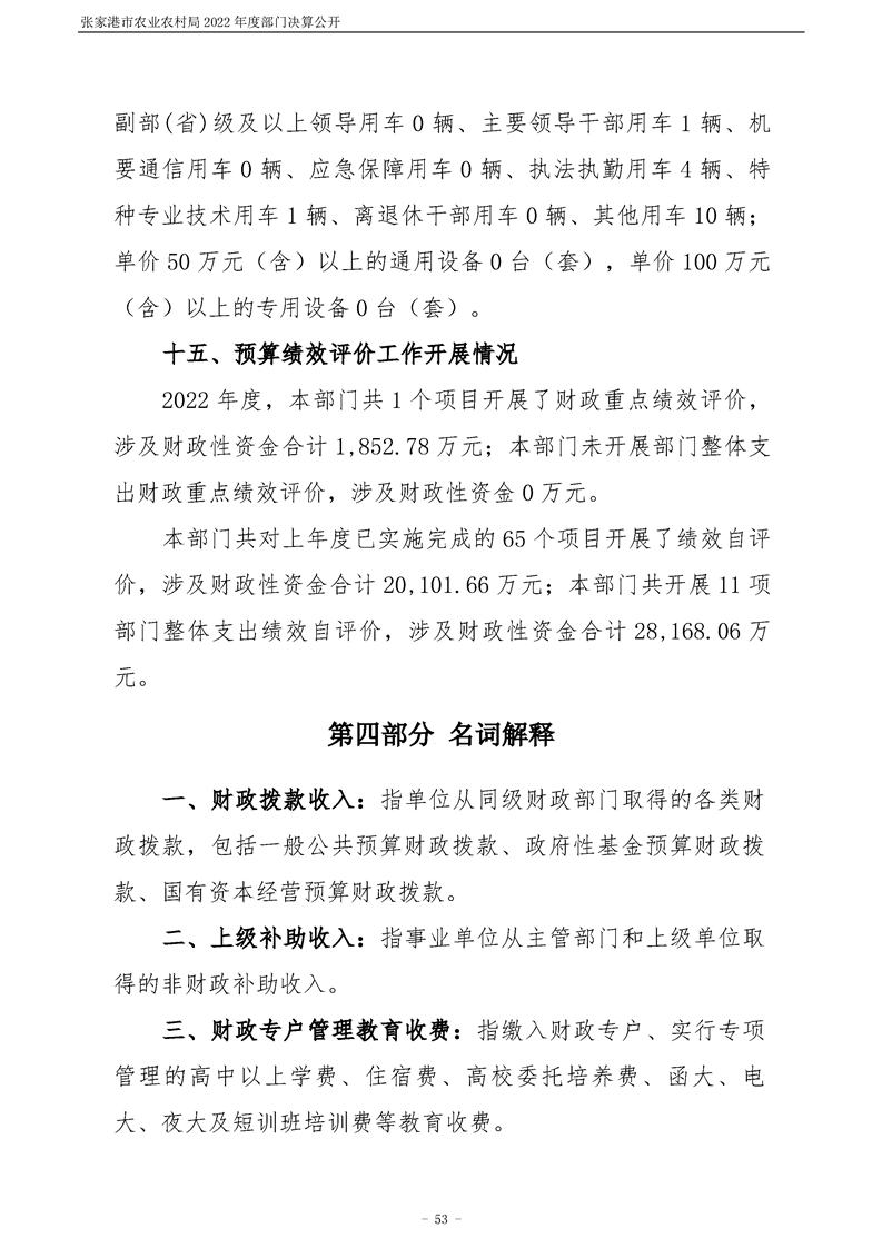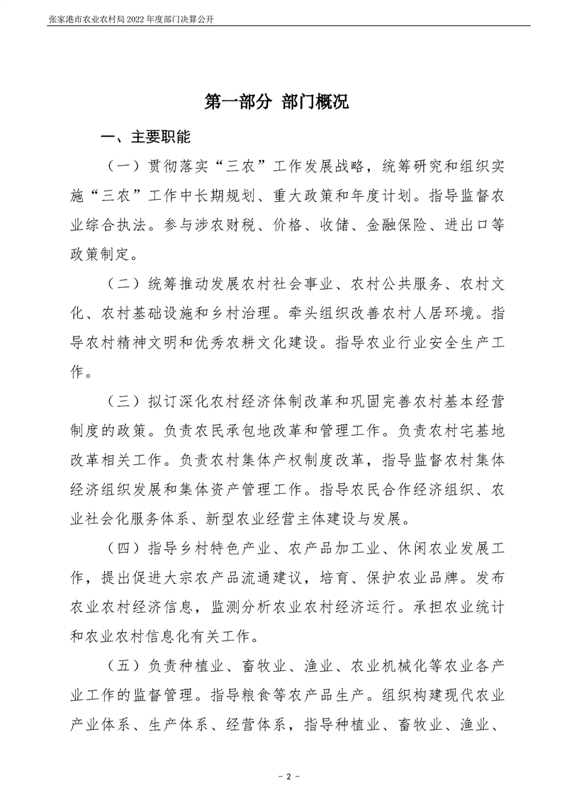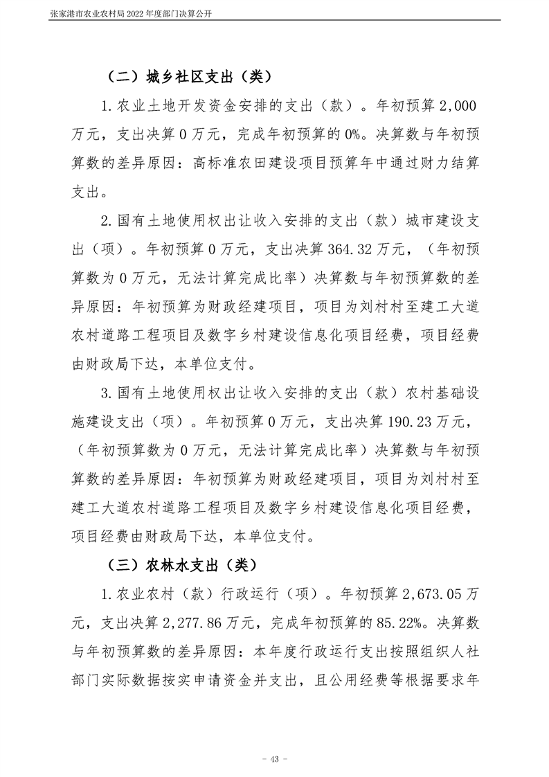 張家港市農業農村局2022年度部門決算公開