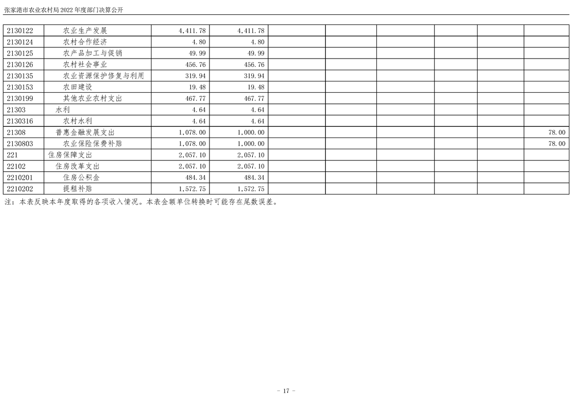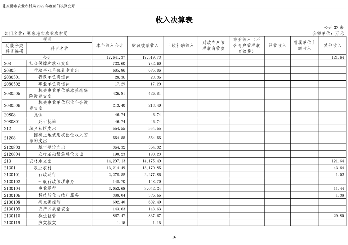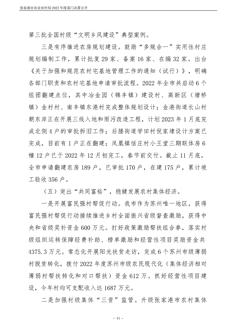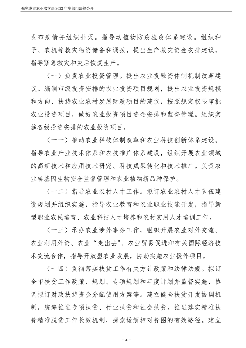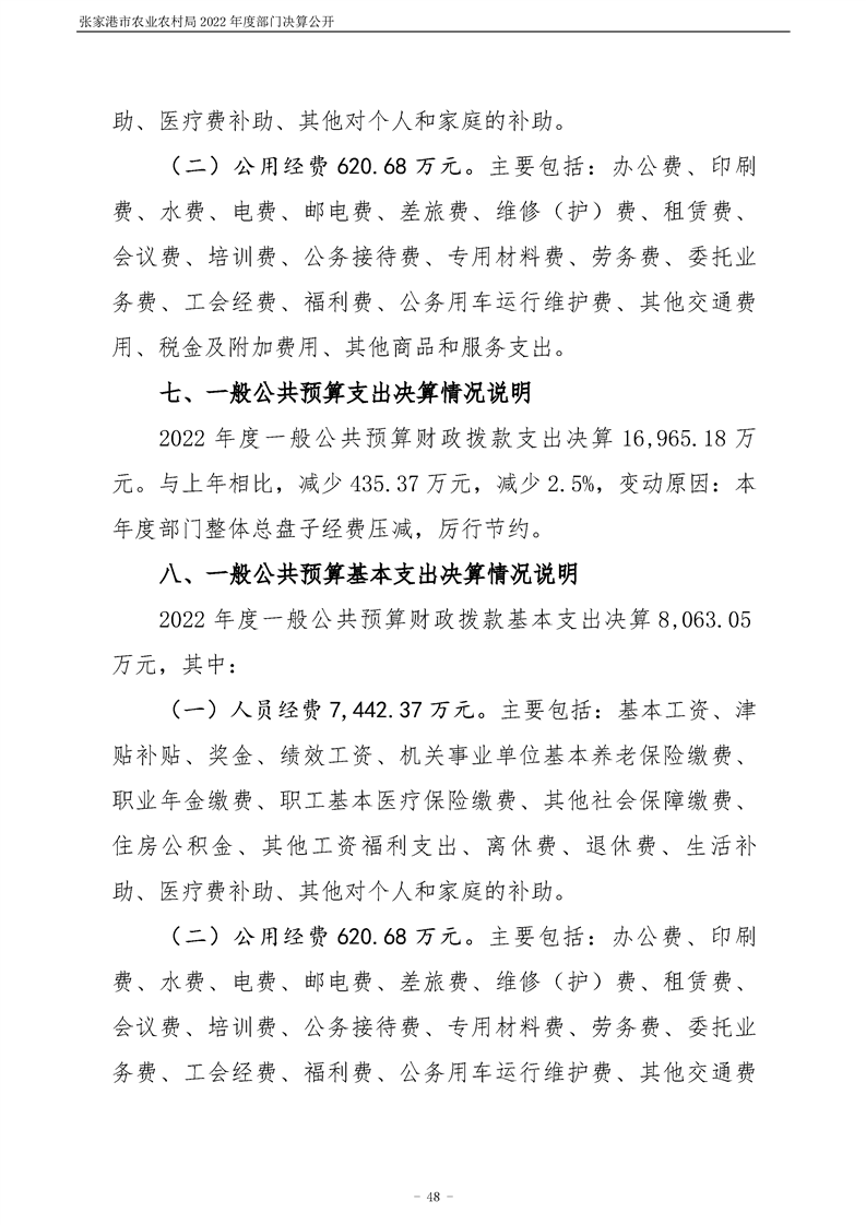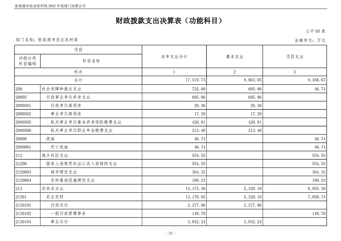 張家港市農業農村局2022年度部門決算公開