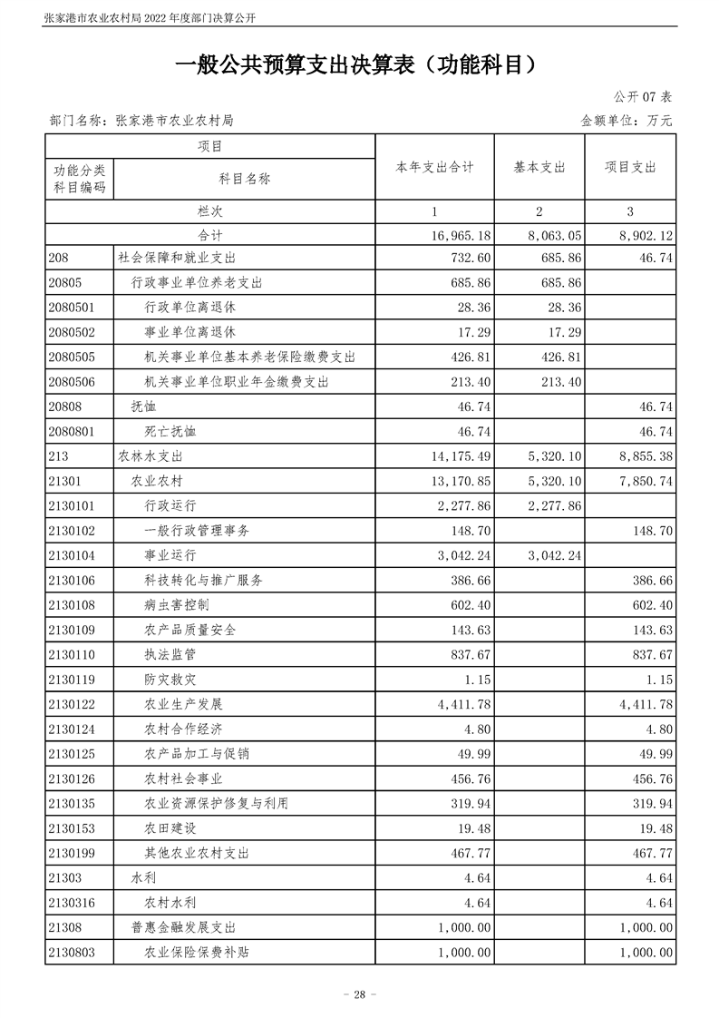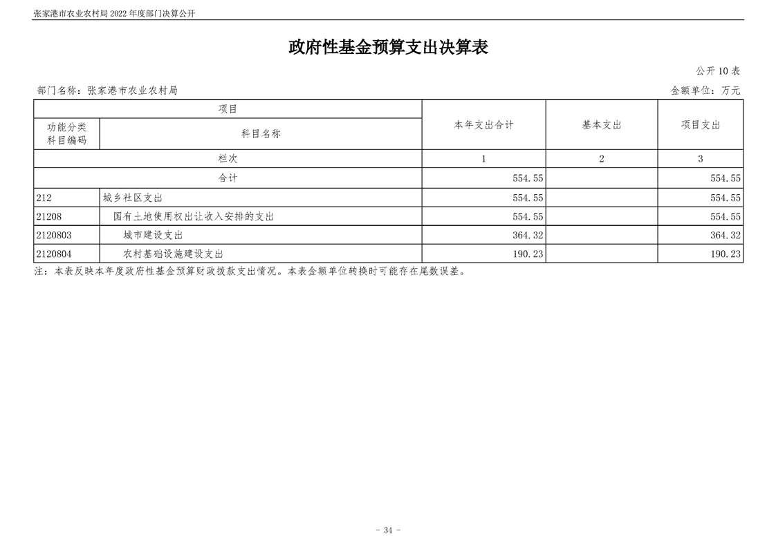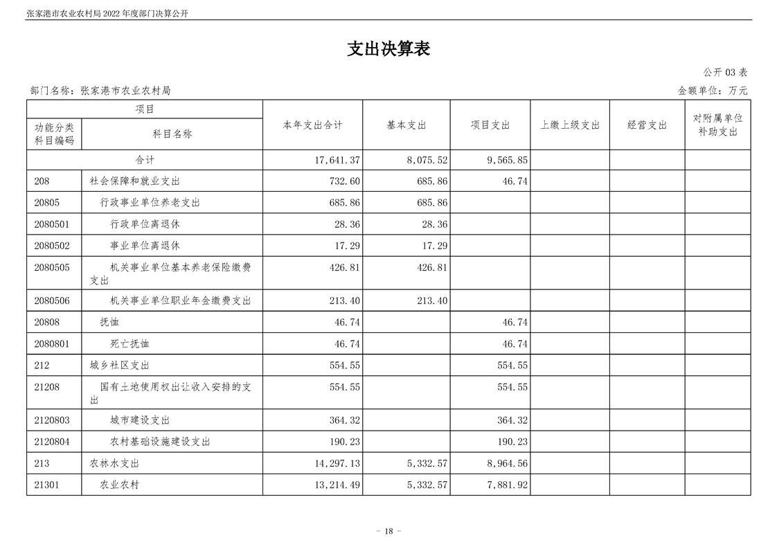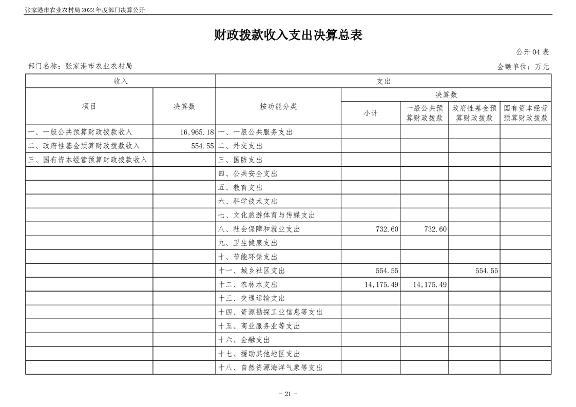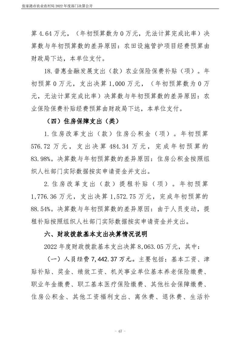 張家港市農業農村局2022年度部門決算公開