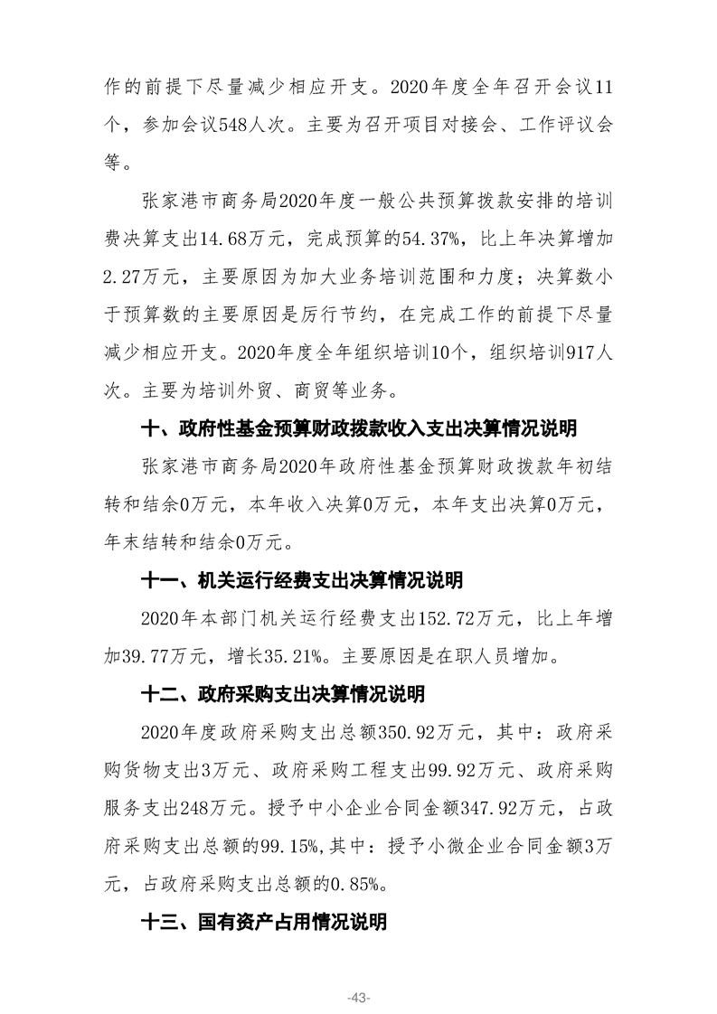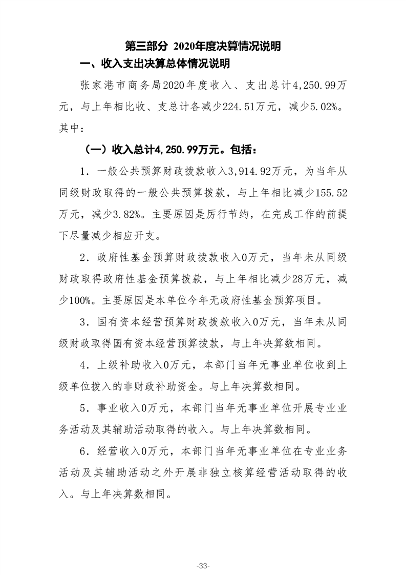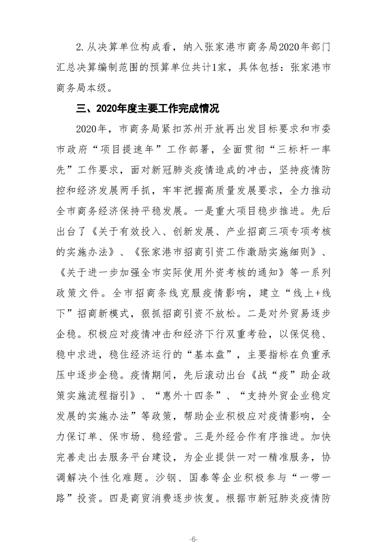 張家港市商務(wù)局2020年部門決算公開
