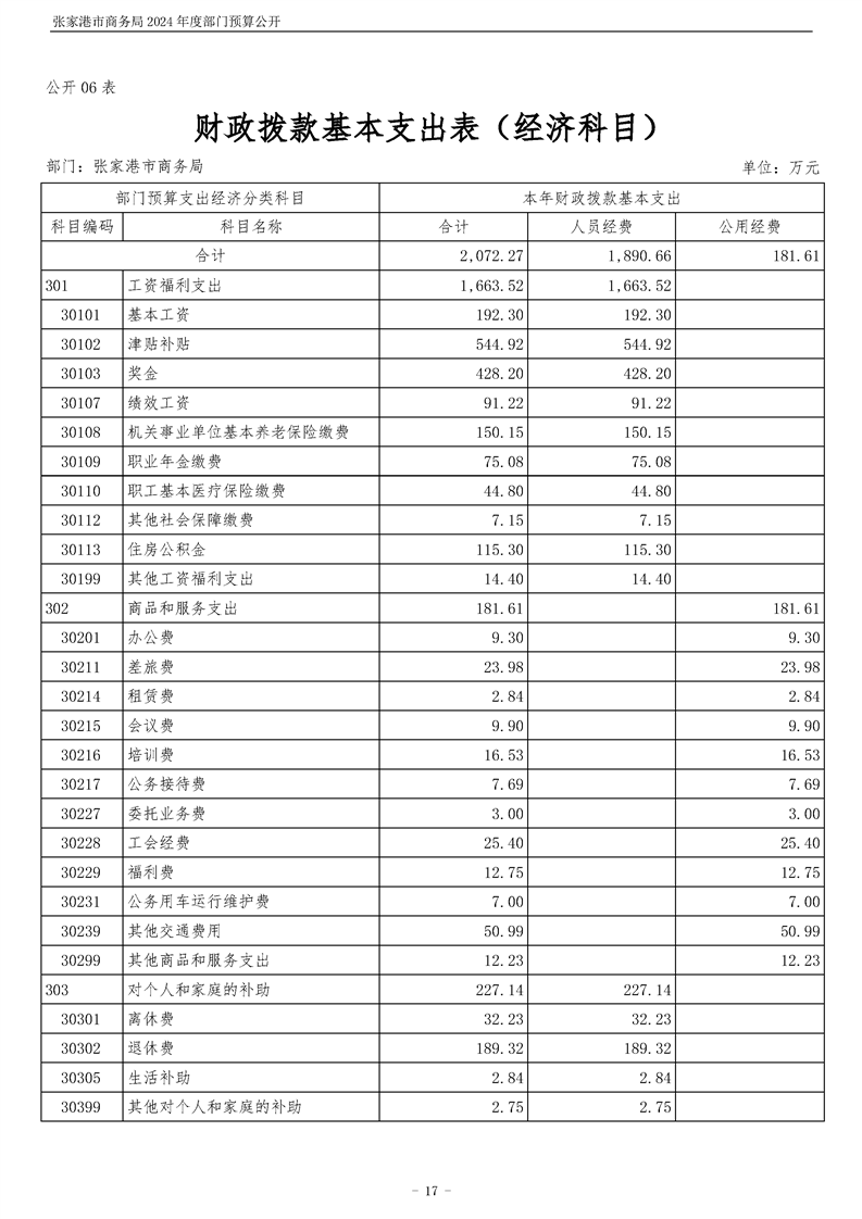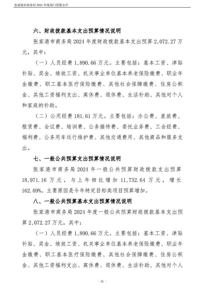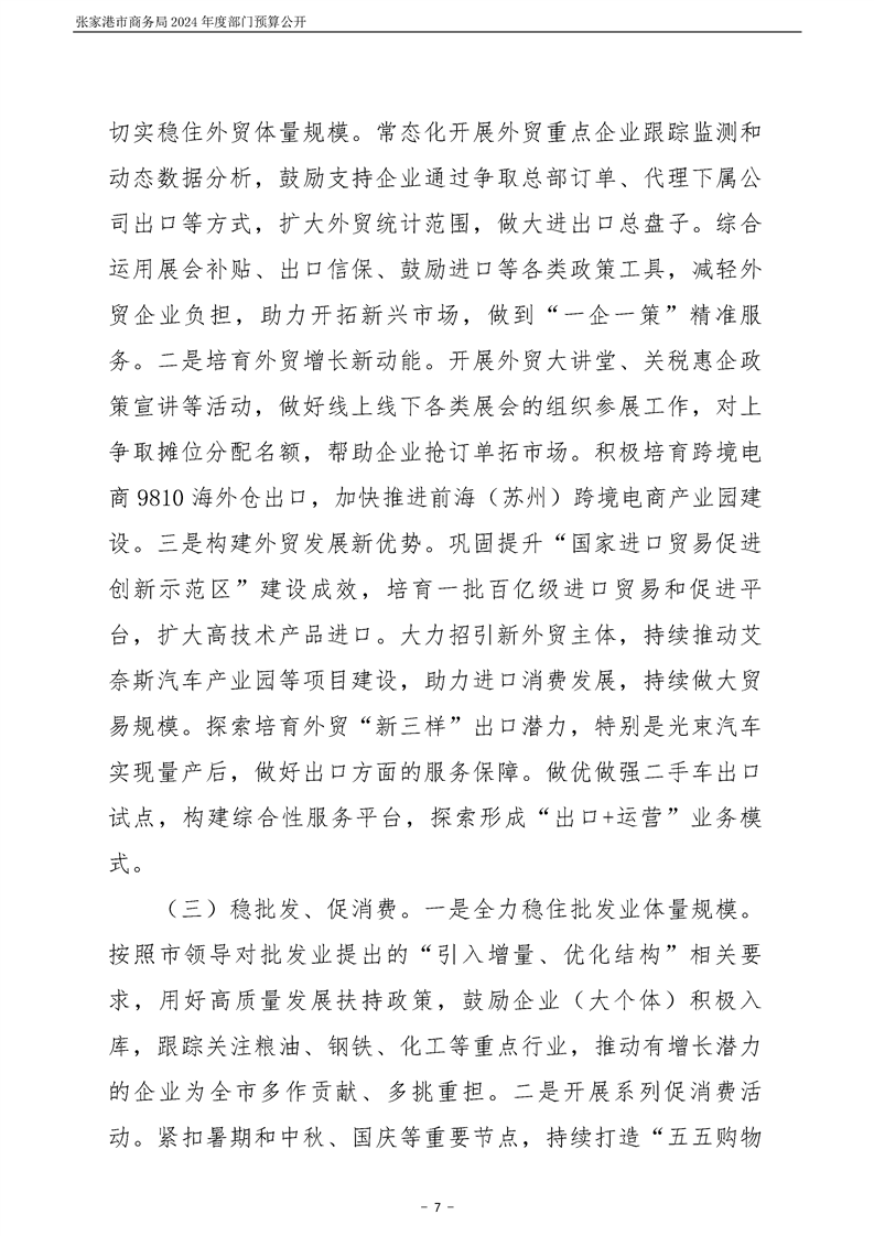 張家港市商務局2024年度部門預算公開