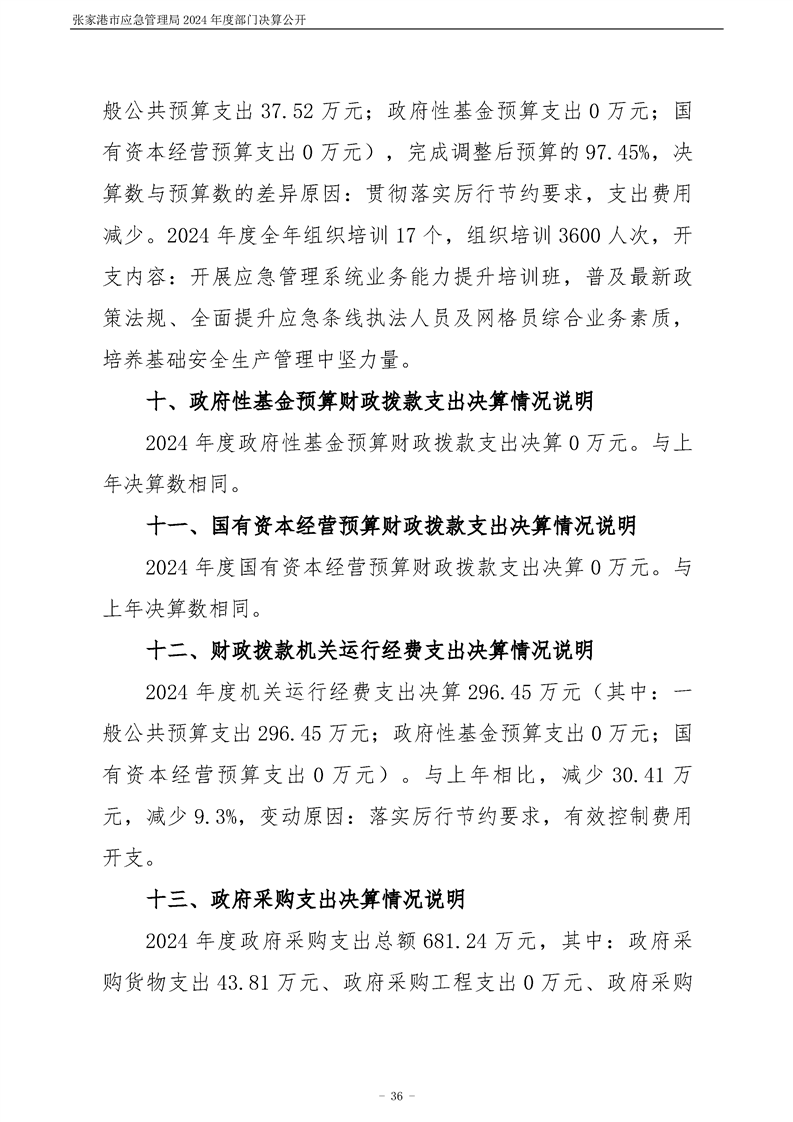 張家港市應急管理局2024年度部門決算公開