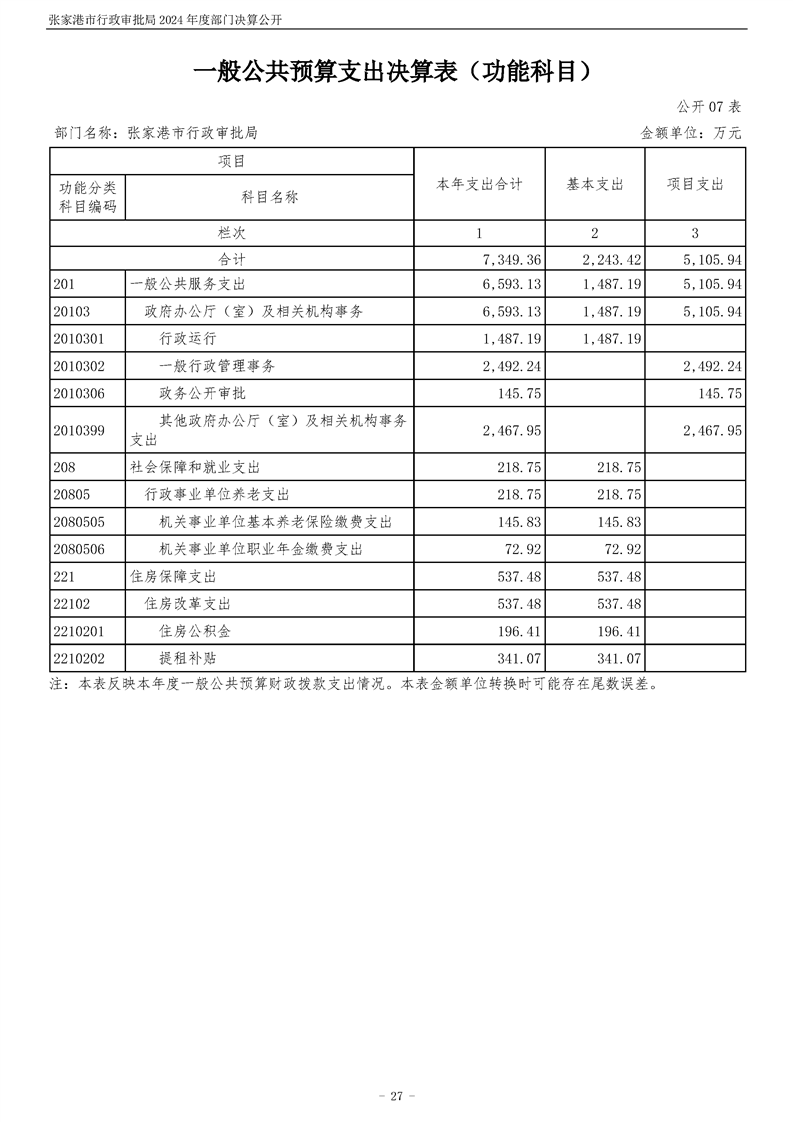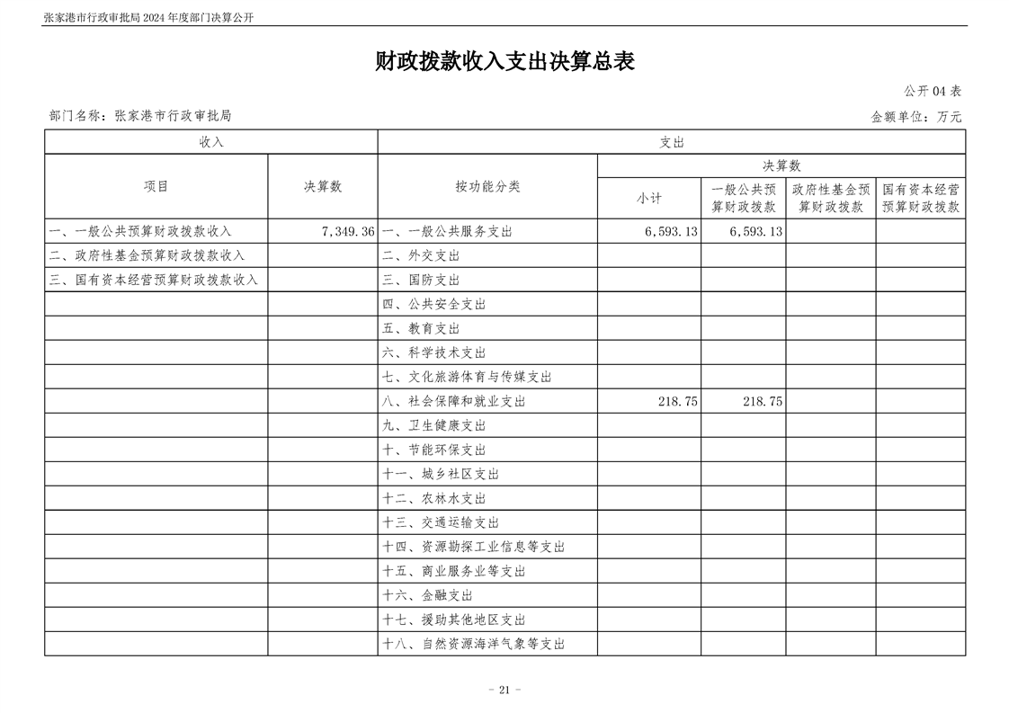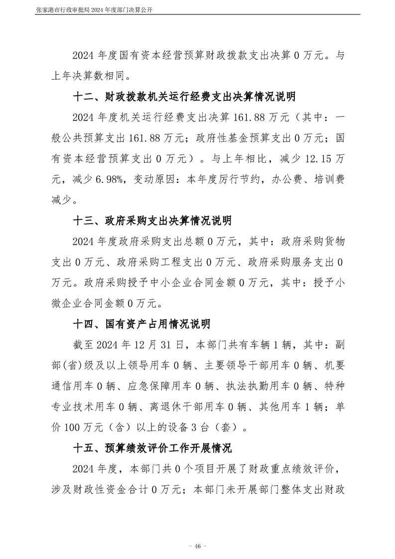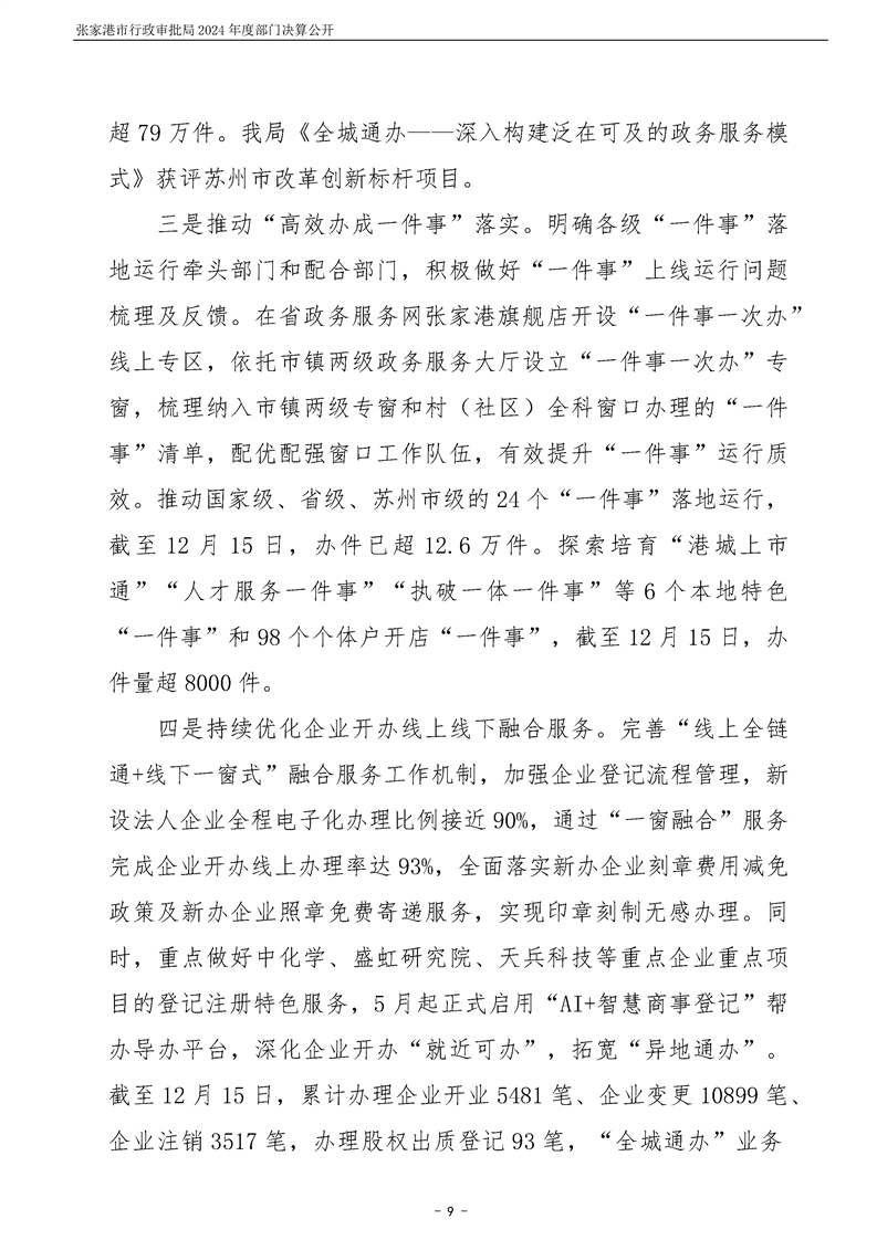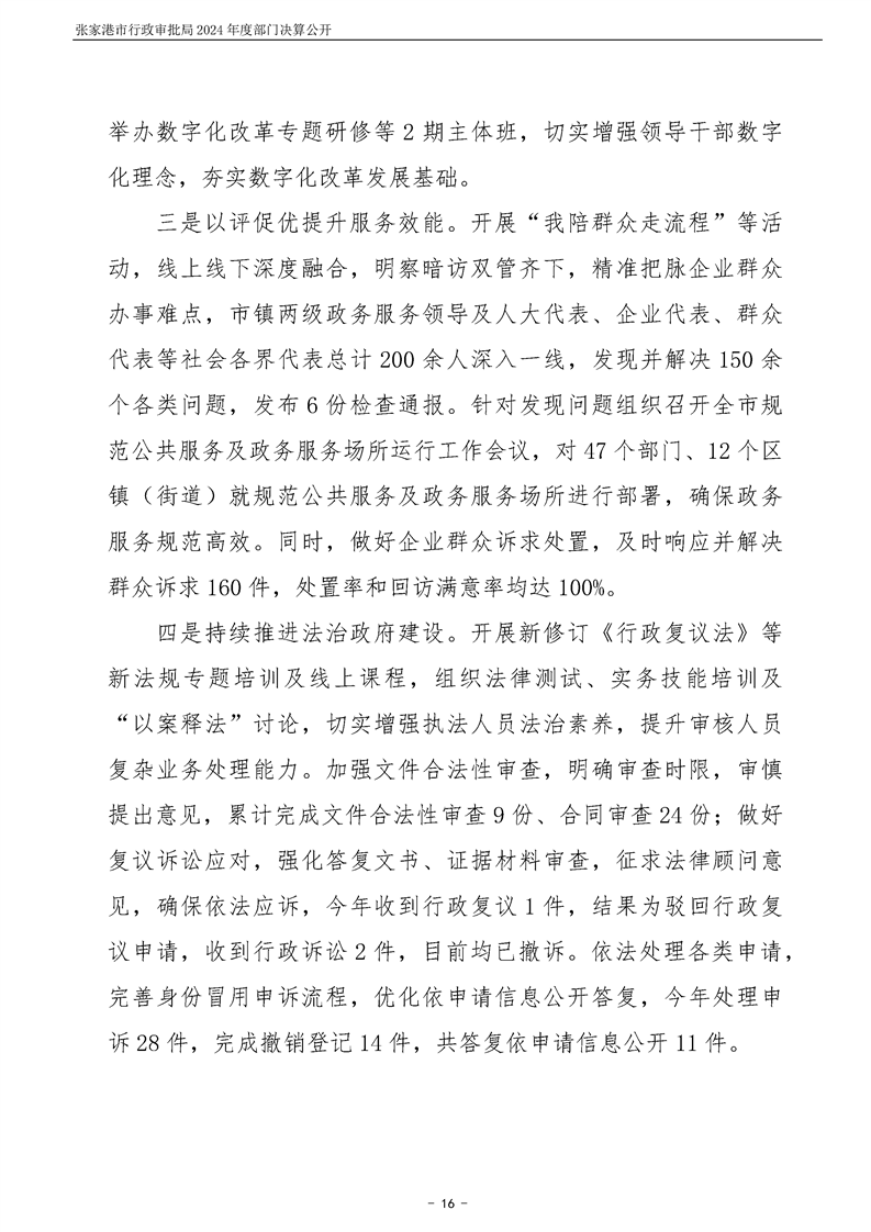 張家港市行政審批局2024年度部門決算公開