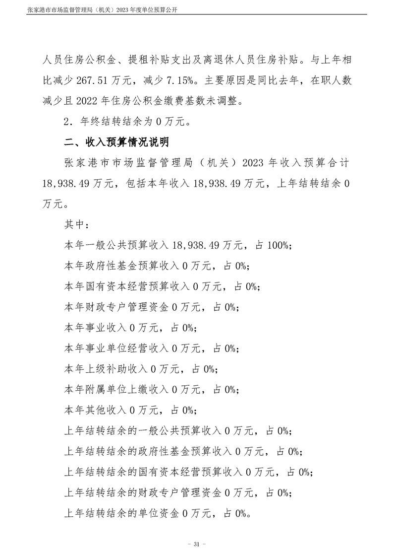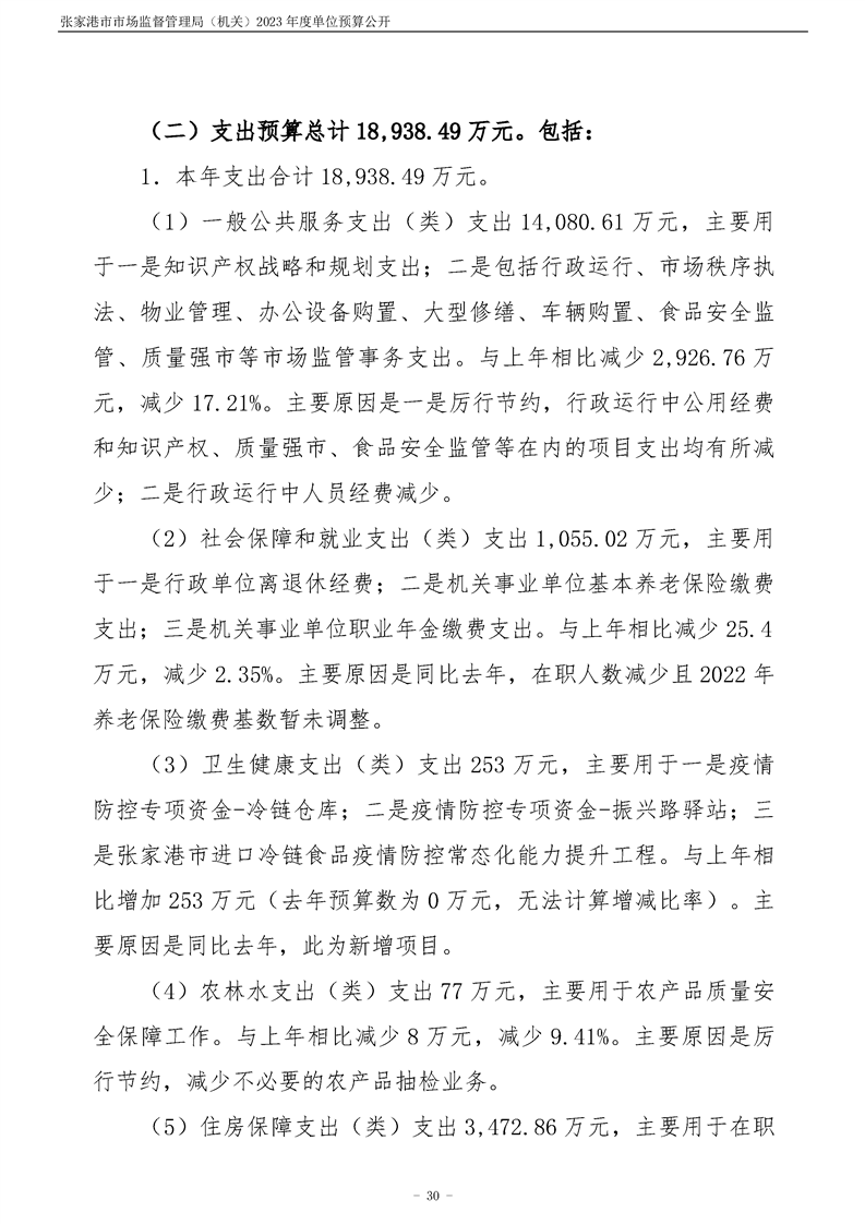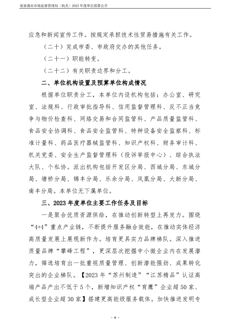 2023年度張家港市市場監督管理局(機關)單位預算公開