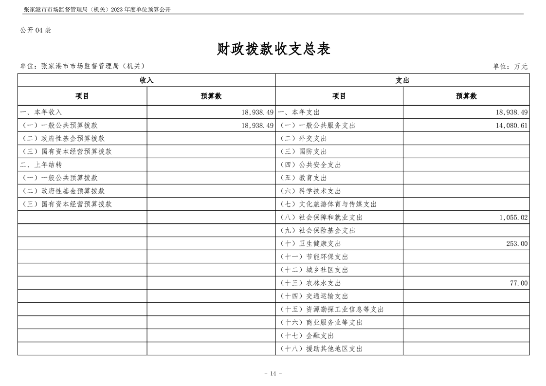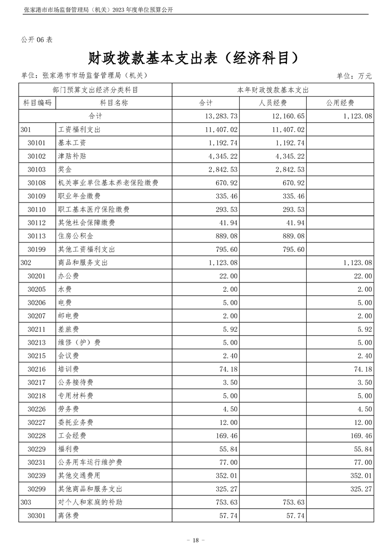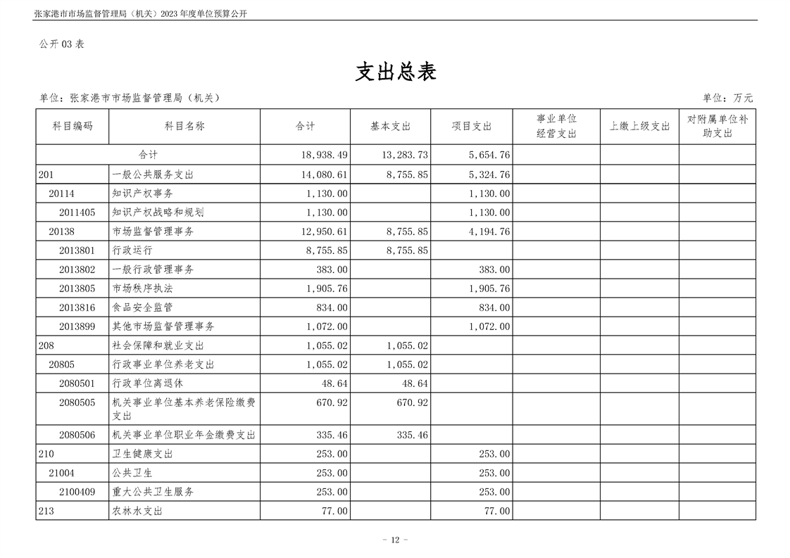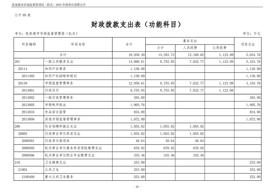 2023年度張家港市市場監督管理局(機關)單位預算公開