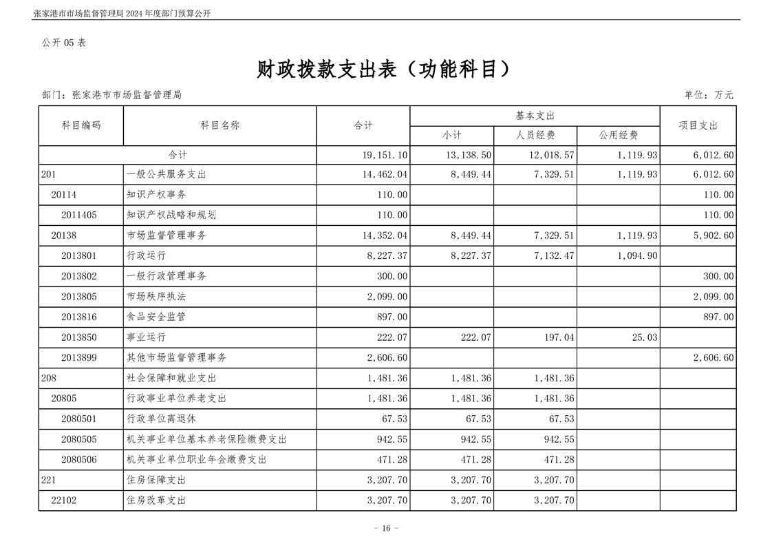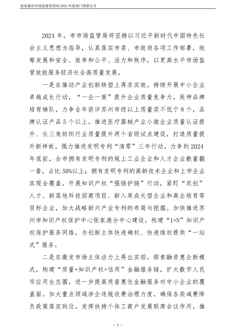 2024年度張家港市市場監督管理局部門預算公開