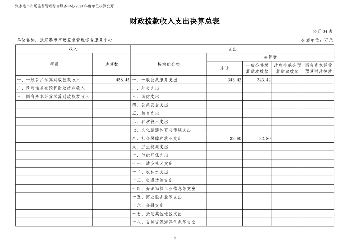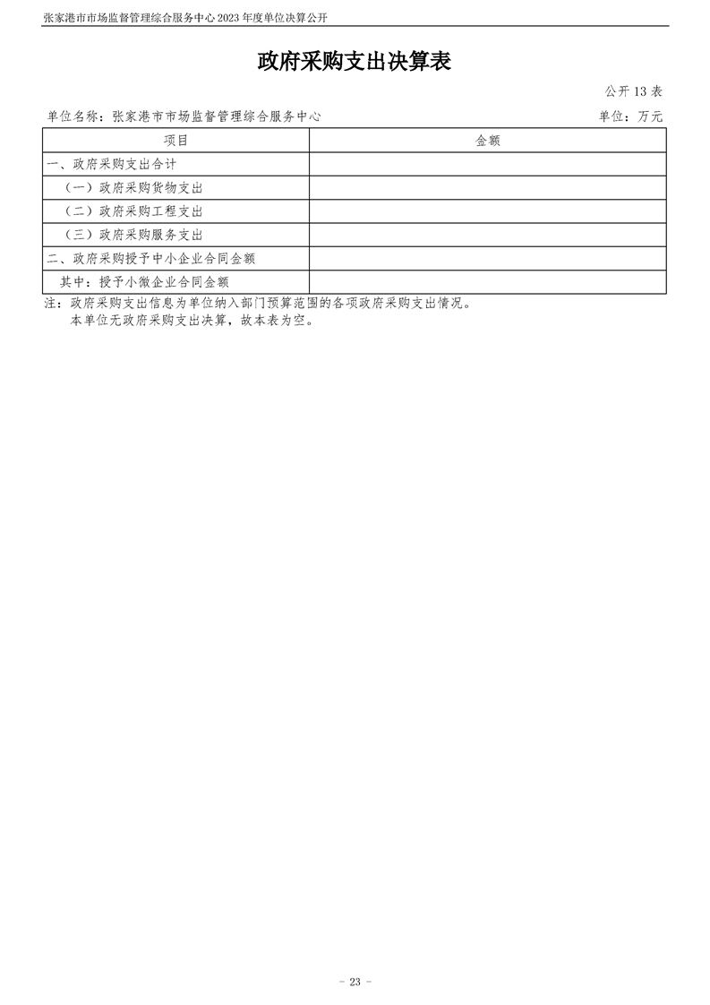 2023年度張家港市市場監(jiān)督管理綜合服務(wù)中心單位決算公開