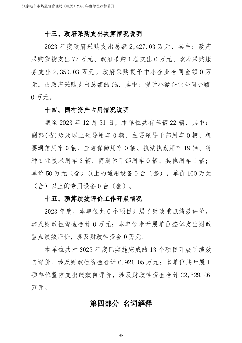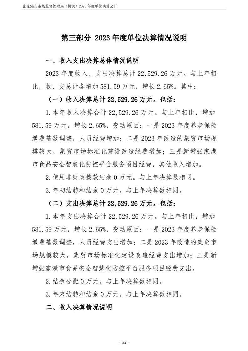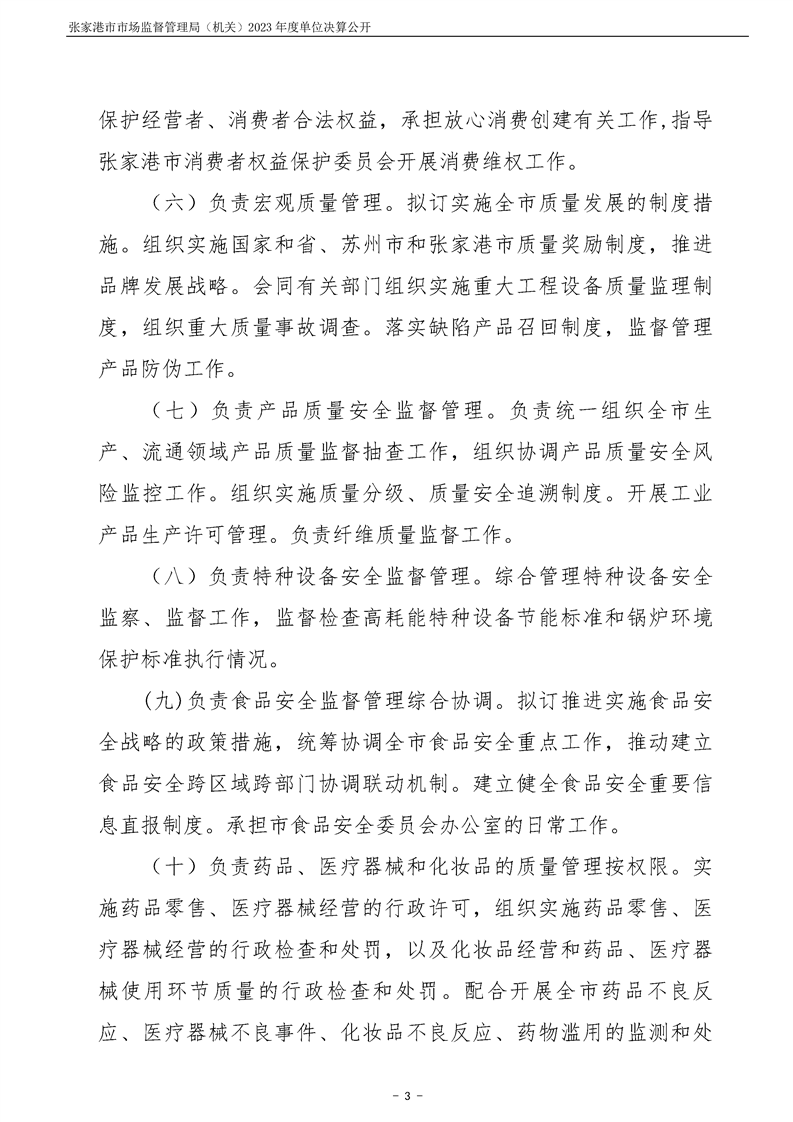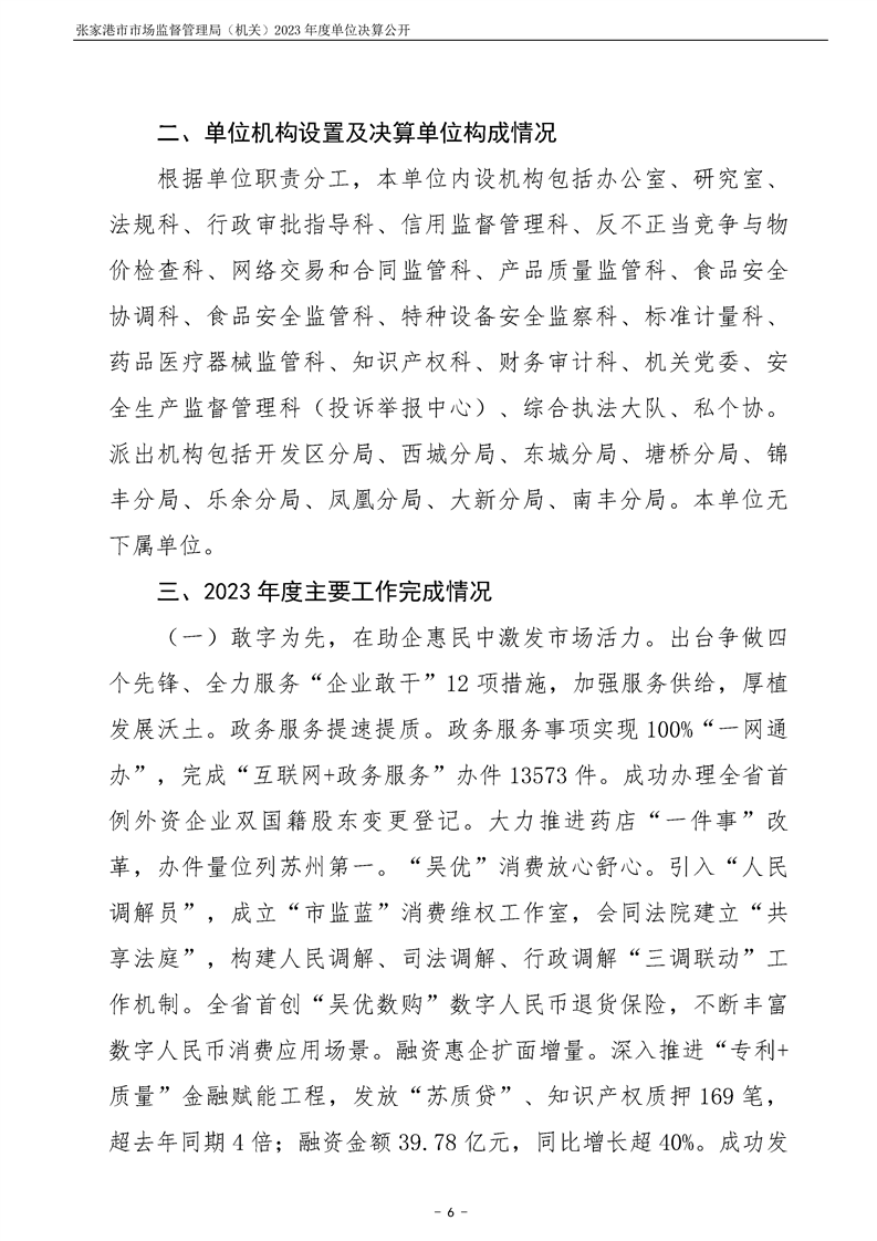2023年度張家港市市場監督管理局(機關)單位決算公開