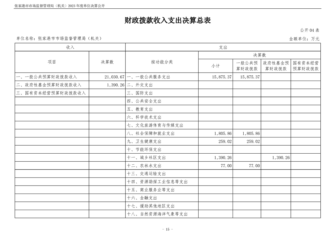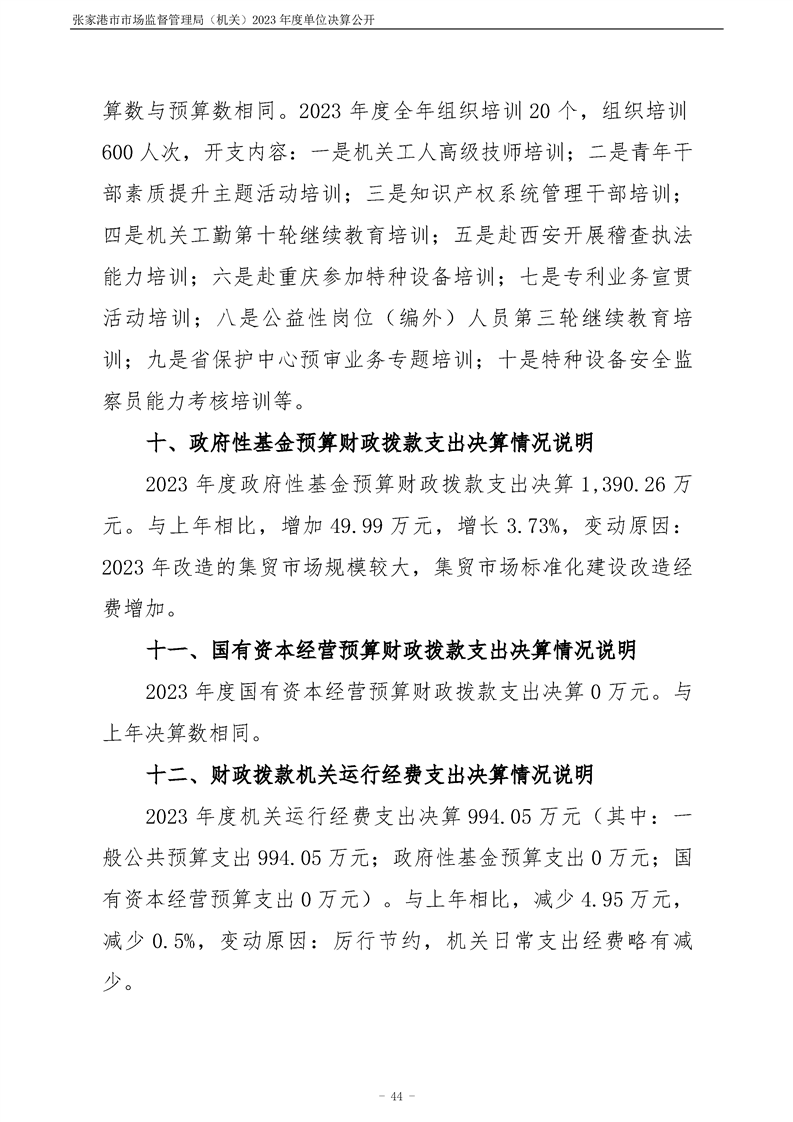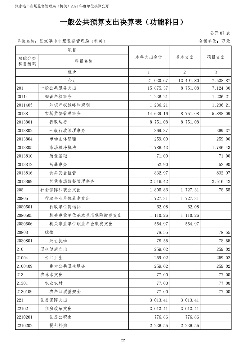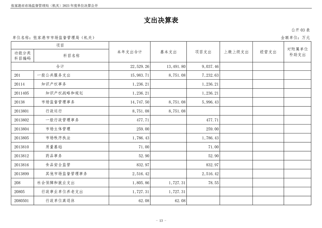 2023年度張家港市市場監督管理局(機關)單位決算公開