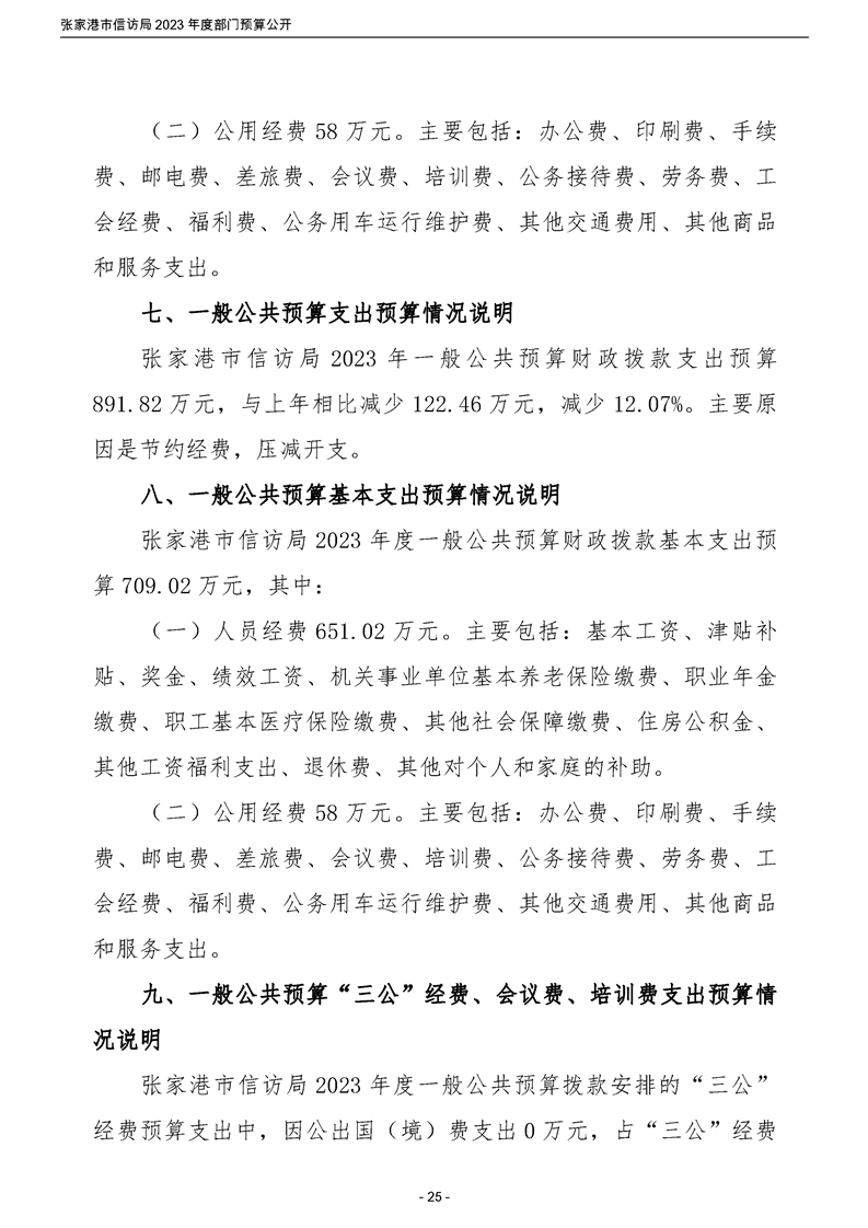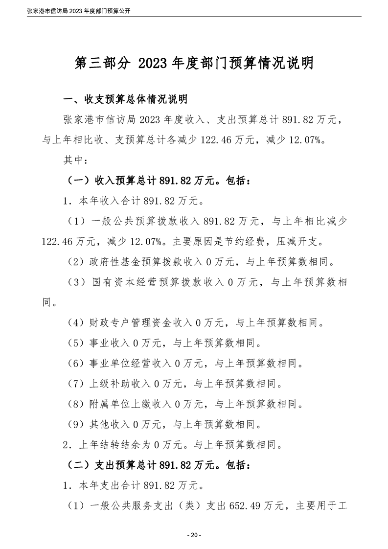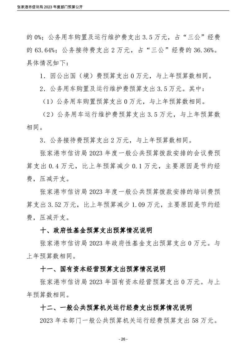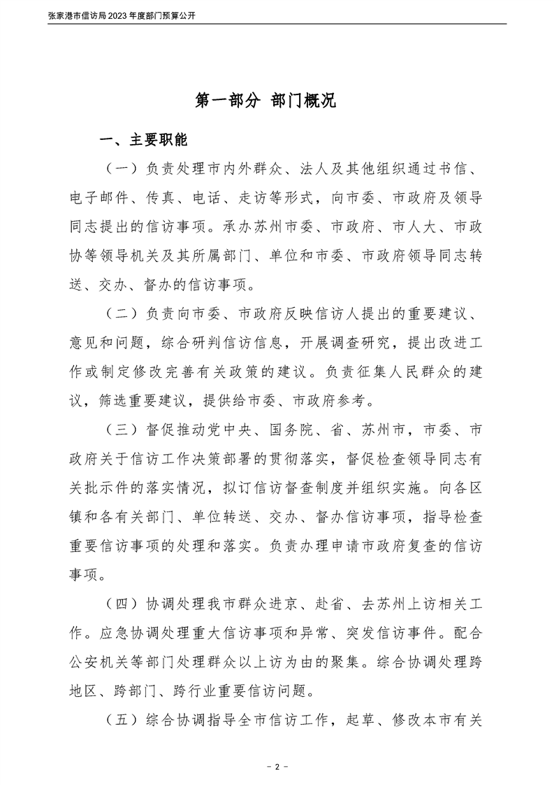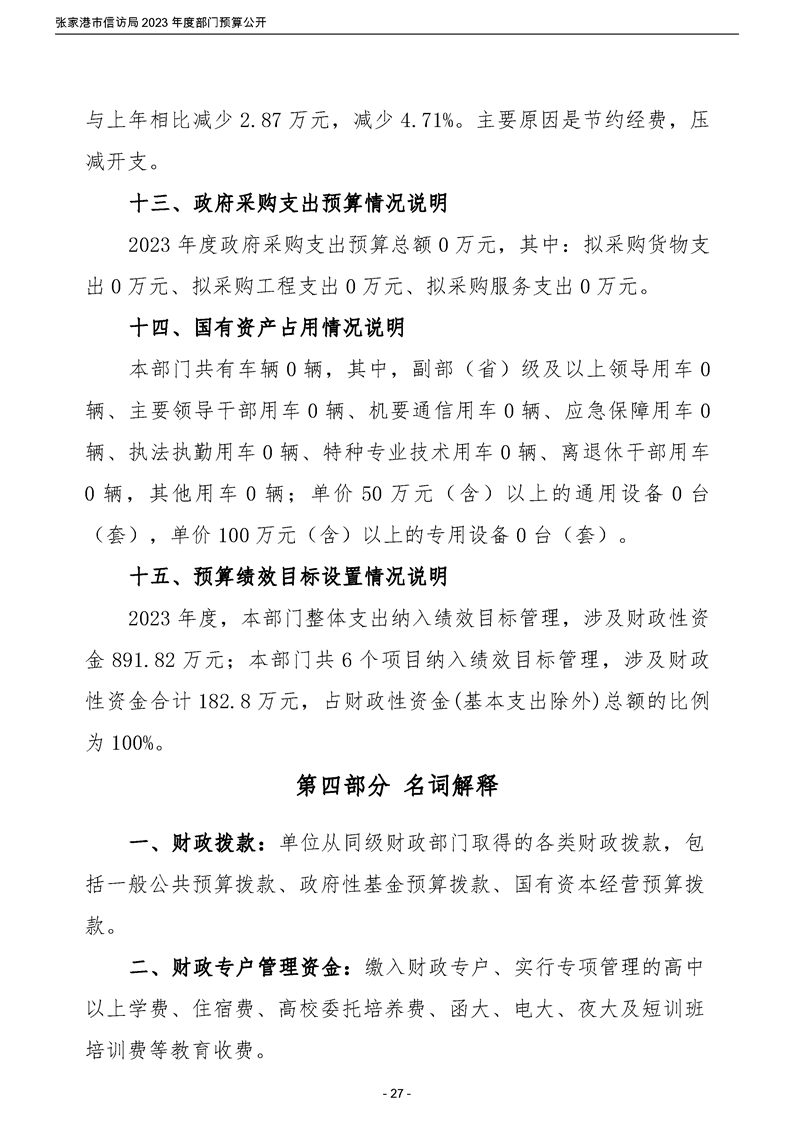 2023年度張家港市信訪局部門預算公開