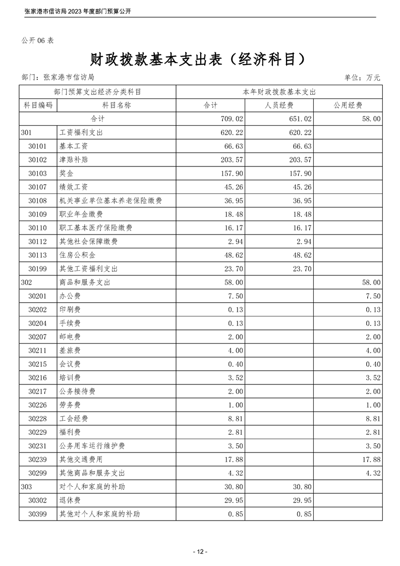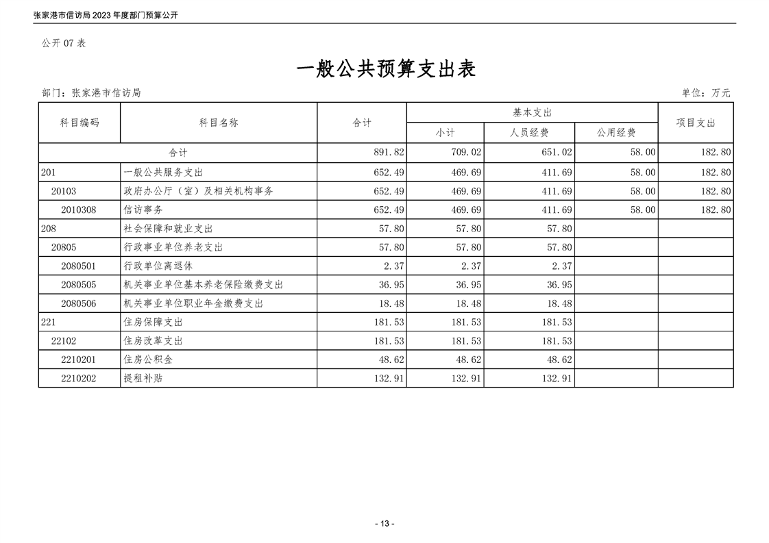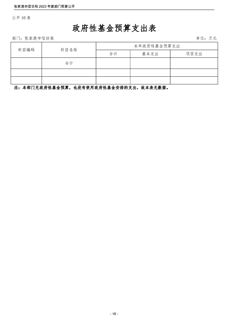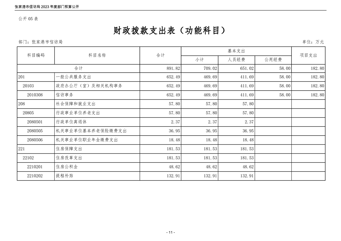 2023年度張家港市信訪局部門預算公開