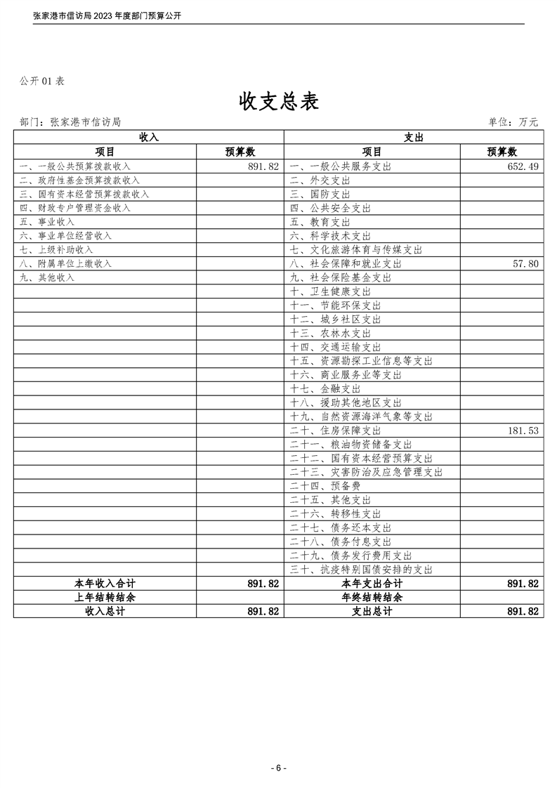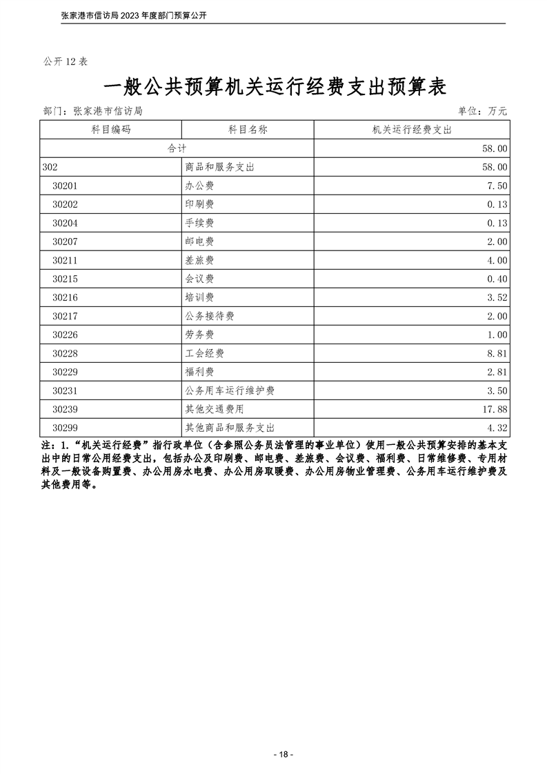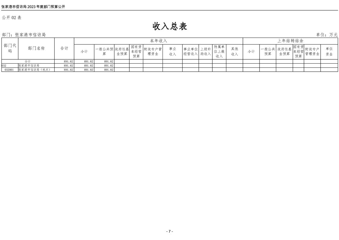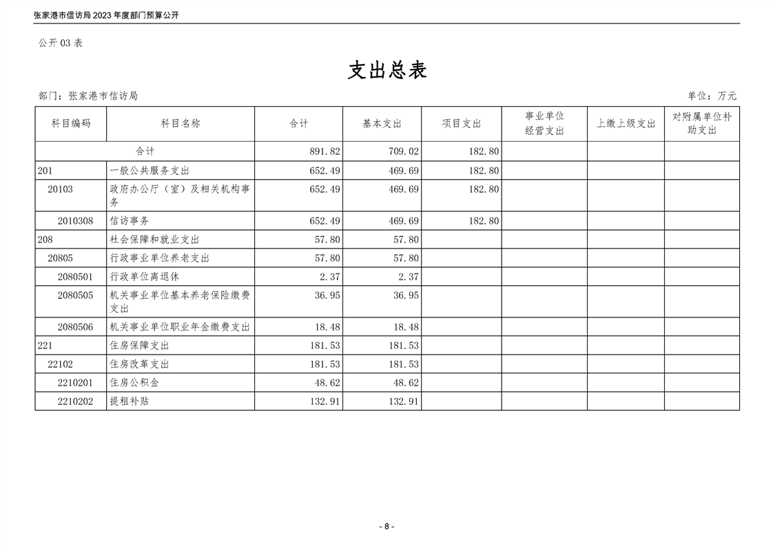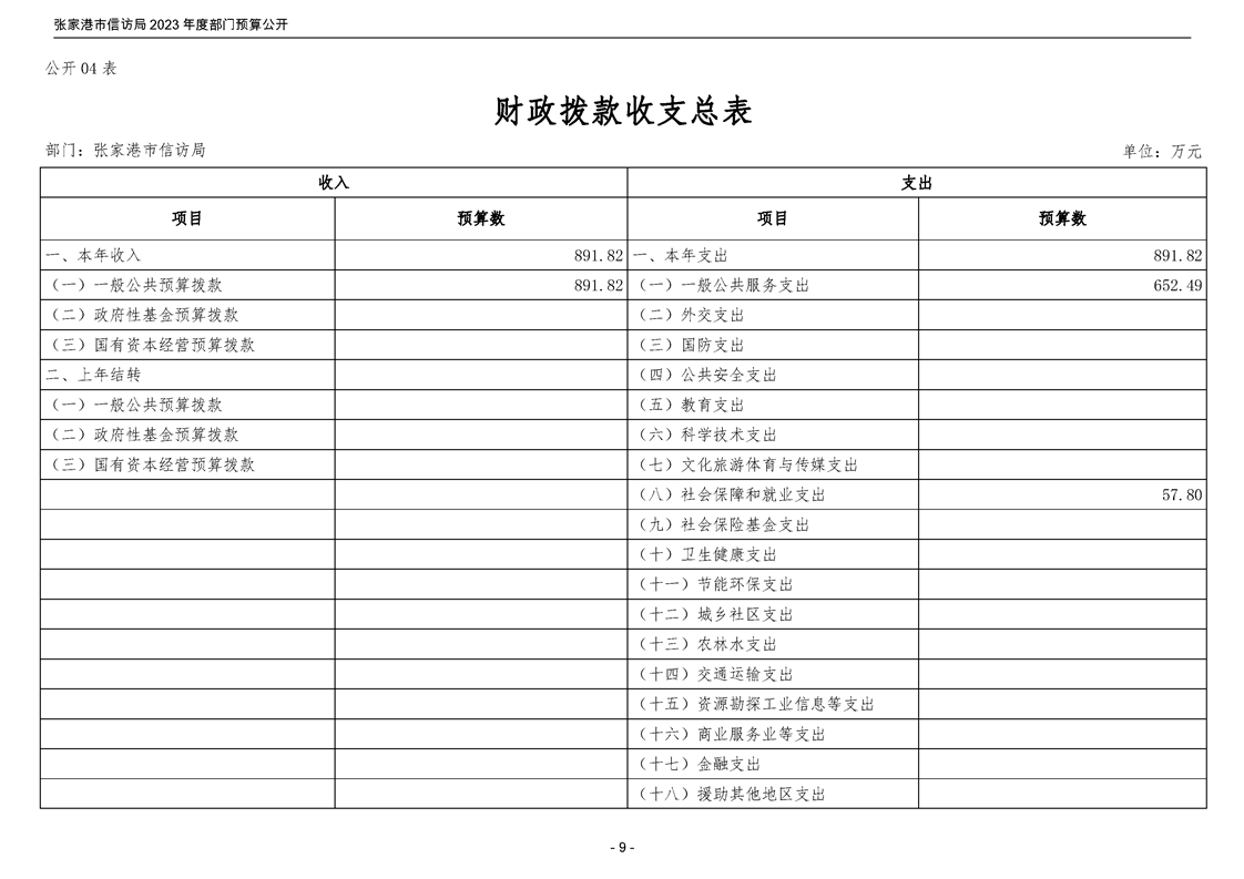 2023年度張家港市信訪局部門預算公開