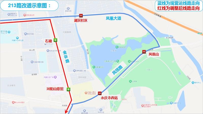 (3)取消:鳳凰大道上“湖濱社區(qū)”,鳳恬路上“鳳凰山、永慶寺西站”站點停靠;