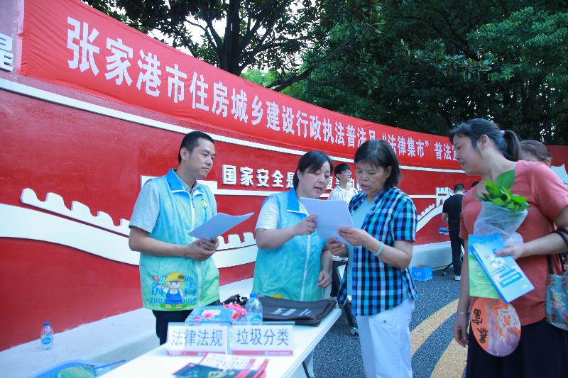 9月6日,張家港市住建局行政執法普法月“法律集市”普法宣傳活動在“聽聽風·通運公園”熱鬧出攤。